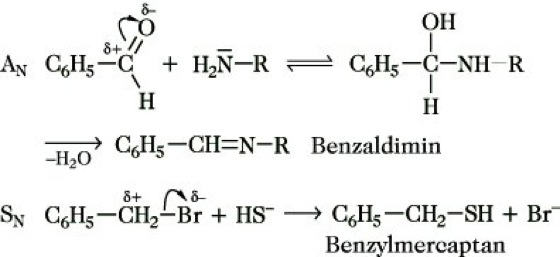 Der Ablauf solcher Reaktionen hängt weitgehend von der Nucleophilie des Reagens und der Polarisierung der Bindungen im Substrat ab. Besonders gut untersucht sind nucleophile Substitutionsreaktionen, Substitution.