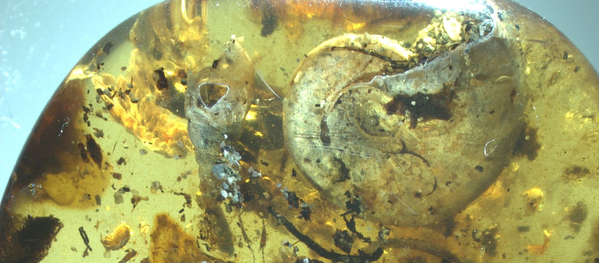 Die gewundenen, geriffelten Schalen der Ammoniten gehören zu den bekanntesten Fossilien überhaupt. Über einen Zeitraum von 350 Millionen Jahren findet man sie in den Ablagerungen urzeitlicher Meere. Nun aber tauchte eines dieser ikonischen Tiere in einer äußerst ungewöhnlichen Situation auf: gefangen im Harz eines 100 Millionen Jahre alten Baumes, dessen Versteinerung aus einem Bernsteinbergwerk im nördlichen Myanmar stammt. Ein Team um Tinting Yu von der Chinesischen Akademie der Wissenschaften stellt den Fund nun in »PNAS« vor; es ordnet das etwa zwölf Millimeter messende Fossil der Gattung Puzosia aus der mittleren Kreidezeit zu.