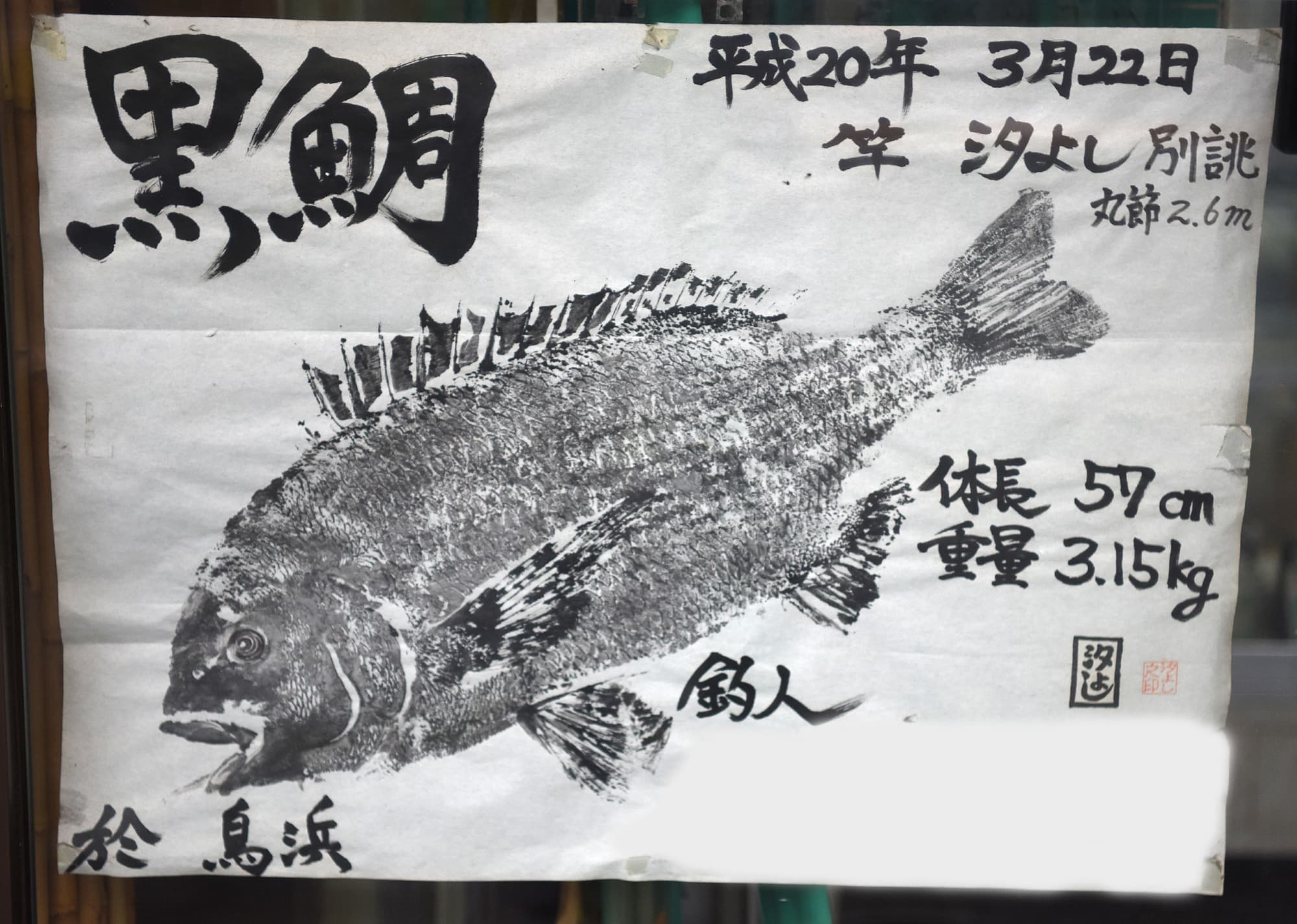 In einer online zugänglichen Bildergalerie führen sie alle 261 Fundstücke auf, die ihre Suche ergab. Die meisten davon stammen aus den Jahren nach 2000, aus der Zeit vor den 1980er Jahren ließen sich dagegen kaum noch Gyotaku auftreiben. Bei dem Fisch auf dieser Abbildung handelt es sich um eine 57 Zentimeter lange Meerbrasse der Art Acanthopagrus schlegelii, die 2008 gefangen wurde – und zwar mit einer maßgefertigten Angelrute.