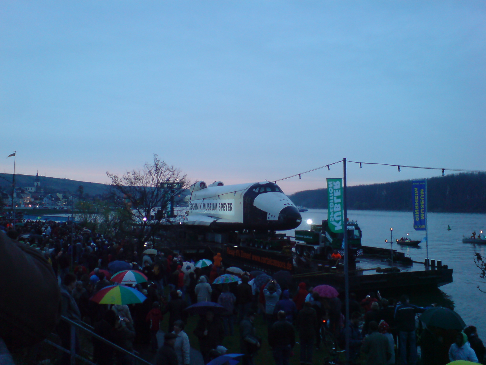 Wenn man die Geschichte nicht kennt, hätte man auch denken können es ist hier eine Messe und ein neuer Flugsimulator lädt zum fliegen ein. Hunderte von Menschen im strömenden Regen?! Was gibt das erst wenn 2010 das Spaceshutle kommt.*g*