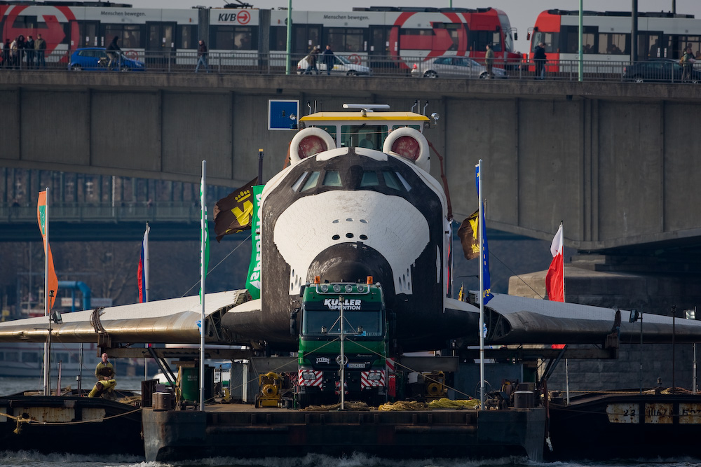 kalt war es unter der brücke. und doch hatten sich viele auch an dieser stelle versammelt. tiefe stand und dann frontal. schön die größenrelationen über besatzung, lkw und shuttle
