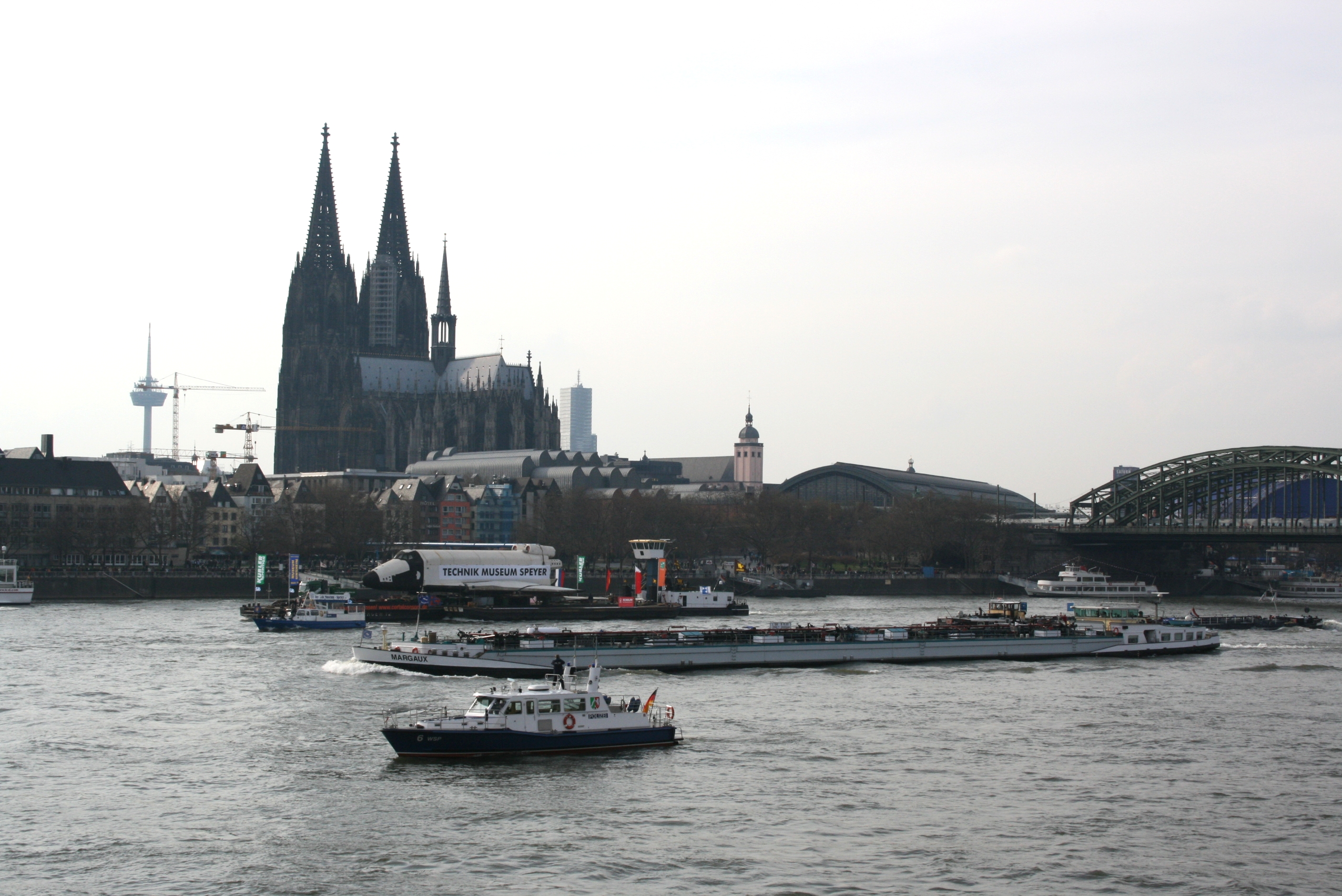 Leserbilder Buran: Vor dem Kölner Dom mitten im Schiffsverkehr der Buran Transport.