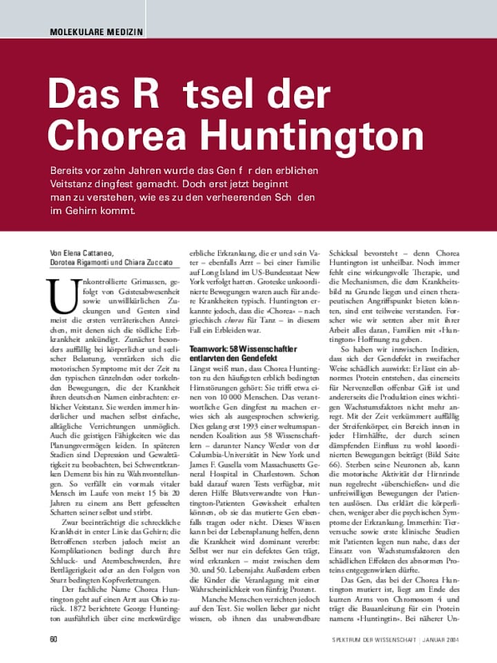 Bereits 1993 wurde das Gen für den erblichen Veitstanz dingfest gemacht. Doch erst jetzt beginnt man zu verstehen, wie es zu den verheerenden Schäden im Gehirn kommt.