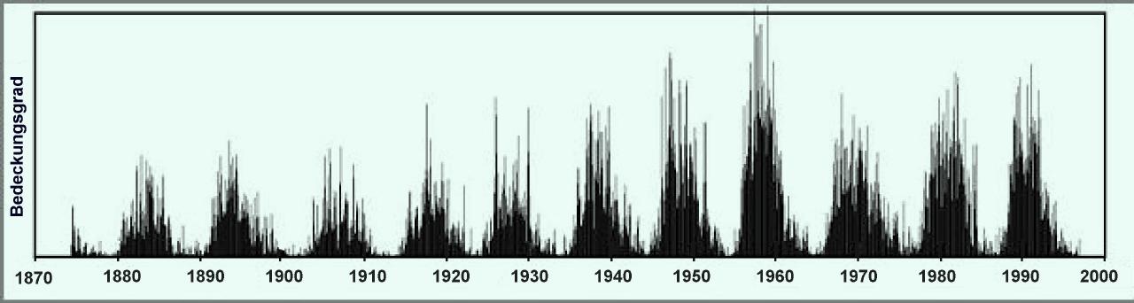 Im Kern wird ein Praktikumsversuch vorgestellt, bei dem man aus Sonnenfleckenzählungen etwas über den Lebensrhythmus der Sonne erfährt.