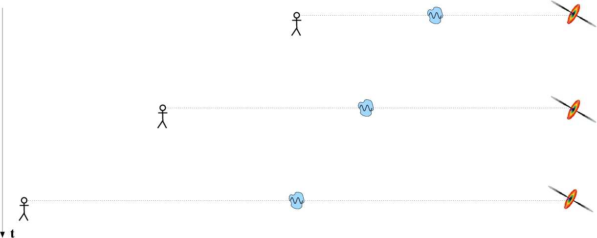 Folienvorlage zur Veranschaulichung, warum eine Lyman-Alpha-Absorptionslinie im sichtbaren Spektralbereich erscheinen kann (Gummibandmodell wird dazu benötigt).