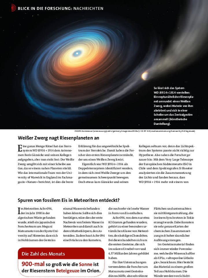 In Bezug zu „Ein erdgroßer Planet bei einem winzigen Stern“ in der Zeitschrift »Sterne und Weltraum«