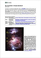 Die WIS-Materialien bestehen aus einem zentralen Arbeitsblatt mit einem Lesetext zum Orionnebel aus Uropas Astronomiebuch sowie einigen sich aus der Bearbeitung des Blattes ergebenden optionalen Aufgaben (Beobachtungsauftrag, Bildauswertung, Aufgaben).
