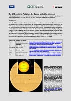 Etwa alle 11 Jahre erreicht der Fleckenzyklus der Sonne sein Maximum (das nächste mal voraussichtlich im Sommer 2025) und der Fernrohranblick der Sonnenscheibe (nach entsprechender Reduzierung der Lichtmenge) wird aufregender (der Unterschied zur ruhigen und blanken Sonnenscheibe ist vergleichbar mit dem Unterschied zwischen einer völlig ruhigen und einer vom Sturm aufgepeitschten Meeresoberfläche). Vor allem die Sonnenflecken sind es, die diesen Unterschied ausmachen. Von Tag zu Tag verschieben sich die Positionen der Flecke merklich. Ursache ist die Rotation der Sonne, die wegen ihres Gas-/Plasmakörpers in Abhängigkeit vom solaren Breitengrad verschieden schnell verläuft. Im vorliegenden WIS-Beitrag wird ein einfacher Versuch zur Bestimmung der differentiellen Rotation der Sonne vorgestellt, der auf Bilddaten das HMI-Instruments der Sonde ‚Solar Dynamic Observatory‘ (SDO) und den Ergebnissen von Freiburger Bachelorarbeiten zu diesem Thema beruht.