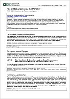 Wie sich Planeten innerhalb des Sonnensystems verraten und wie die Planetenjäger versuchen, das Objekt ihrer Begierde zu finden, wird in Form von Modellvorstellungen, verschiedenen Aufgaben und Analogien vorgestellt.