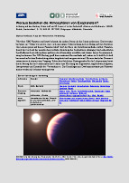 Weit über 5000 Planeten sind heute bekannt, die andere Sterne als die Sonne umkreisen. Doch woraus bestehen sie? Woher wissen wir, dass sich eine nähere Untersuchung auch in Bezug auf den Nachweis von Lebensspuren auf diesen Planeten lohnt? Auf der Basis der Detektionsmethode mittels Planetentransit lässt sich mit der periodischen Lichtabschwächung des Zentralsterns abhängig vom beobachteten Spektralbereich ein Absorptionsspektrum der Atmosphäre ermitteln und daraus deren Zusammensetzung bestimmen.