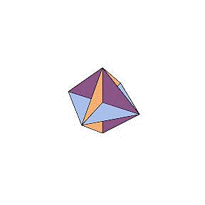 Besonders interessant wird es, wenn mehrere nicht direkt benachbarte Zeltwände in eine Ebene geraten. Wenn zum Beispiel beim Oktaeder die Zeltwände gerade gleichseitige Dreiecke sind, liegen jeweils drei von ihnen in derselben Ebene wie eine Fläche des ursprünglichen Oktaeders. Zusammen ergeben diese vier Flächen ein gleichseitiges Dreieck der doppelten Seitenlänge; von denen gibt es insgesamt acht Stück, die sich gegenseitig durchdringen. Das ist die "stella octangula", die wir auch schon früher kennengelernt haben.