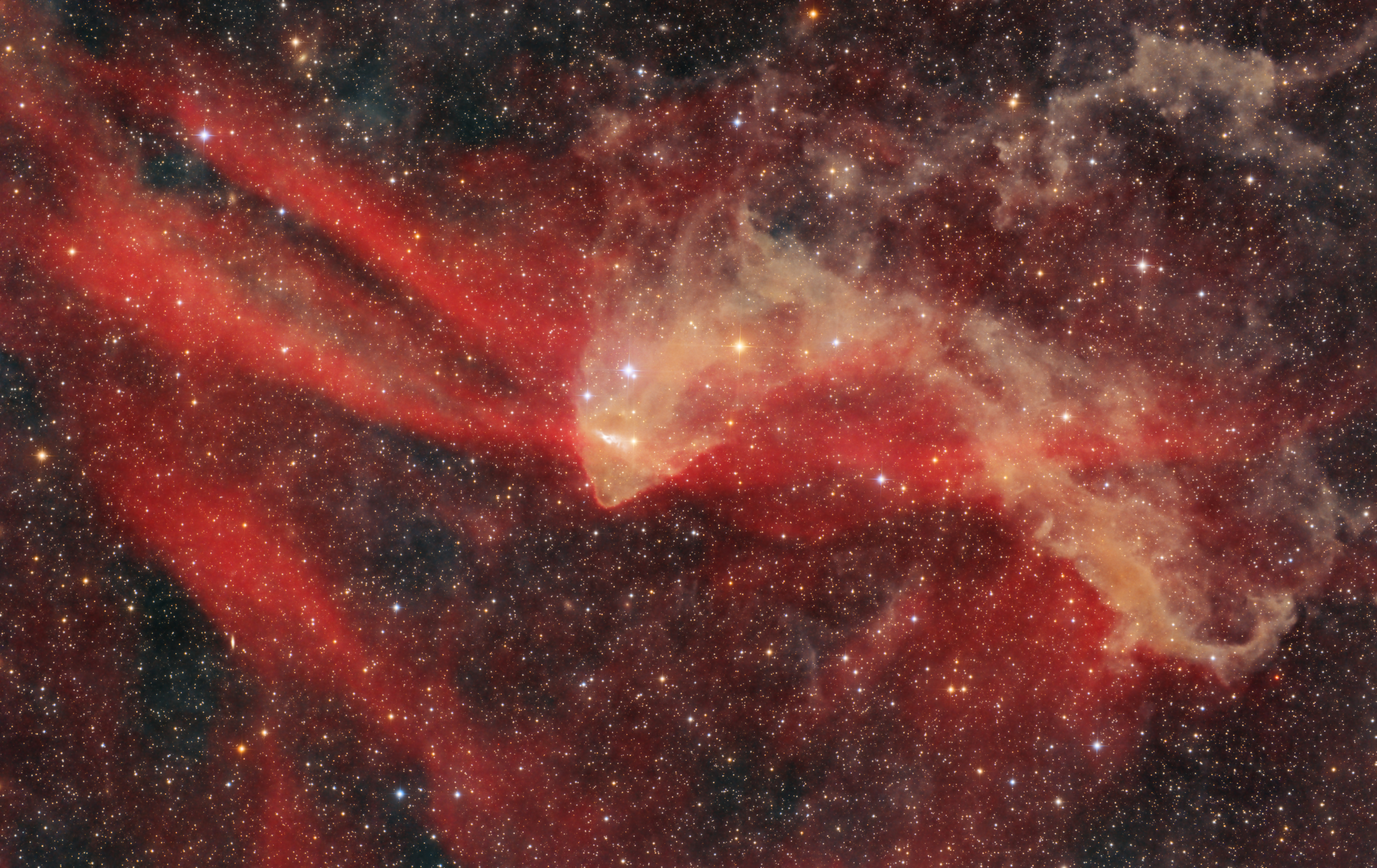 - 74 Stunden Schmalbanddaten: 8 Stunden H Alpha aufgenommen mit einer monochromen Kamera und der gesamte Rest mit Dual-Schmalbandfiltern und Farbkameras