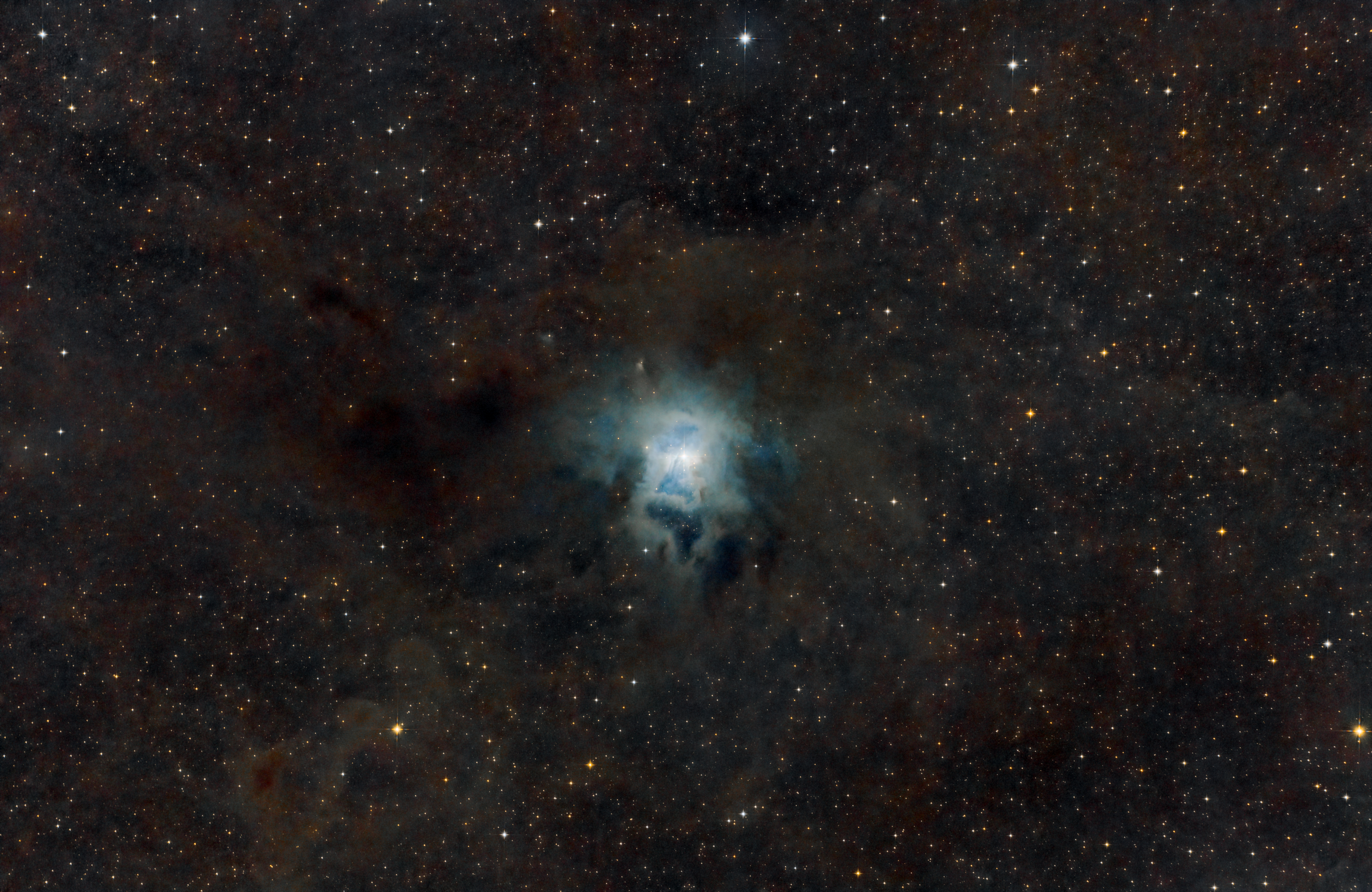 Im Juni gibt es hier bei Hamburg nur noch nautische Dunkelheit. Aber weil das Wetter ansonsten optimal war, habe ich trotzdem acht klare Nächte (!) genutzt und während jeder halbwegs dunklen Minute auf den Irisnebel NGC 7023 gehalten. Eine echte Herausforderung bei der Bildbearbeitung!
