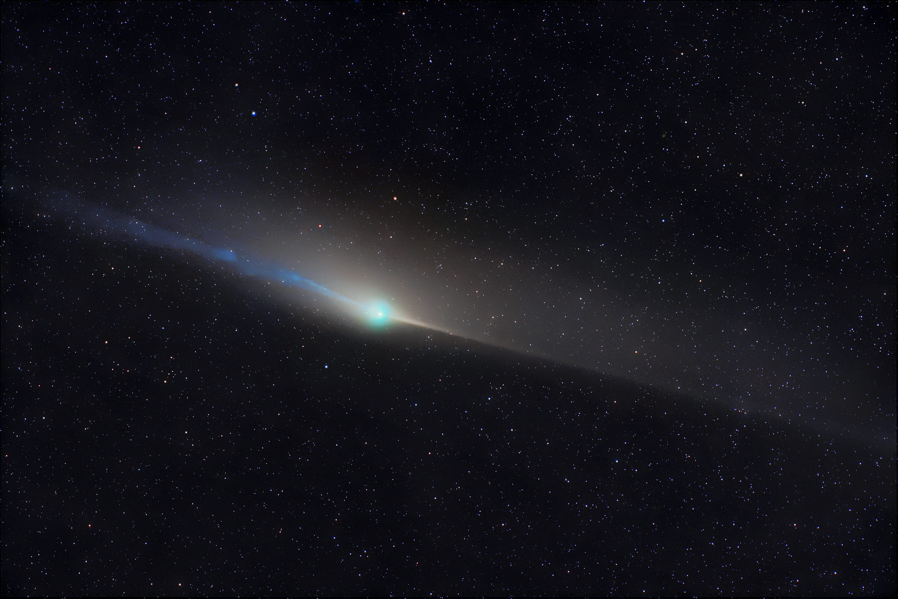 Schon Tage bevor die Erde die Kometenbahnebene kreuzt (6. Juni) zeigte Komet 12P/Pons-Brooks einen außerordentlich langen Typ III Gegenschweif. Die Remote-Aufnahme ist eine Ko-Produktion von Jäger-Rhemann-Demetz mit Remote-Aufnahmen aus Namibia