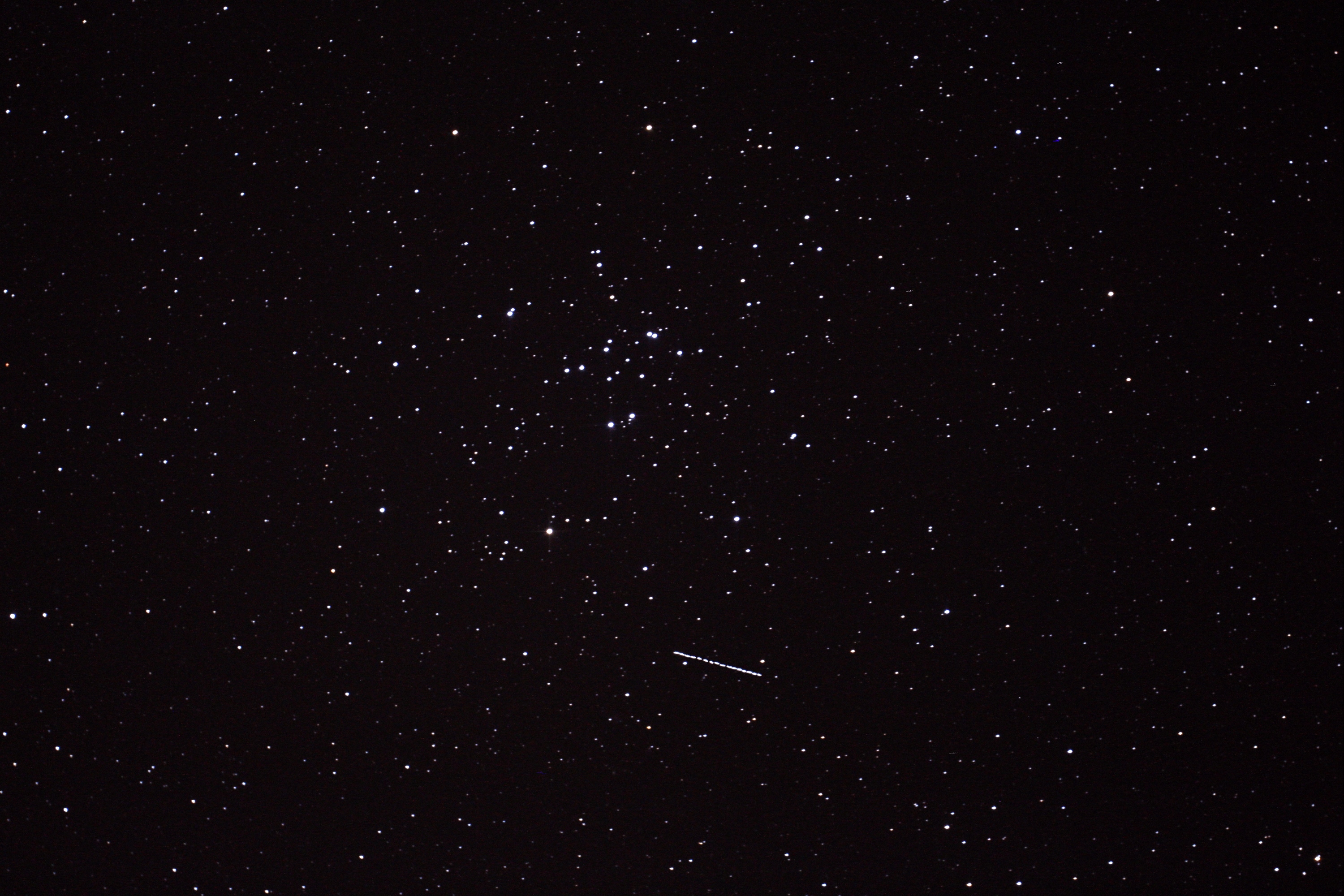 Am 14. Dezember 2017 konnte ich den Verursacher der Geminiden-Meteore dokumentieren, den Kleinplaneten (3200) Phaeton. Glücklicherweise zog er gerade am Südrand des hellen Sternhaufens Messier 34 im Perseus vorbei, so dass sich ein hübsches Motiv ergab. Eine Serie von Bildern zeigt seine Bewegung als Strichspur zwischen 18:29 und 18:41 Uhr MEZ. Da er sich kurz vor seiner Erdnähe befand, war er recht fix unterwegs. Die Helligkeit betrug etwa 10,7 mag. Zwei Tage später erreichte er seinen geringsten Erdabstand mit etwa 27-facher Mondentfernung.