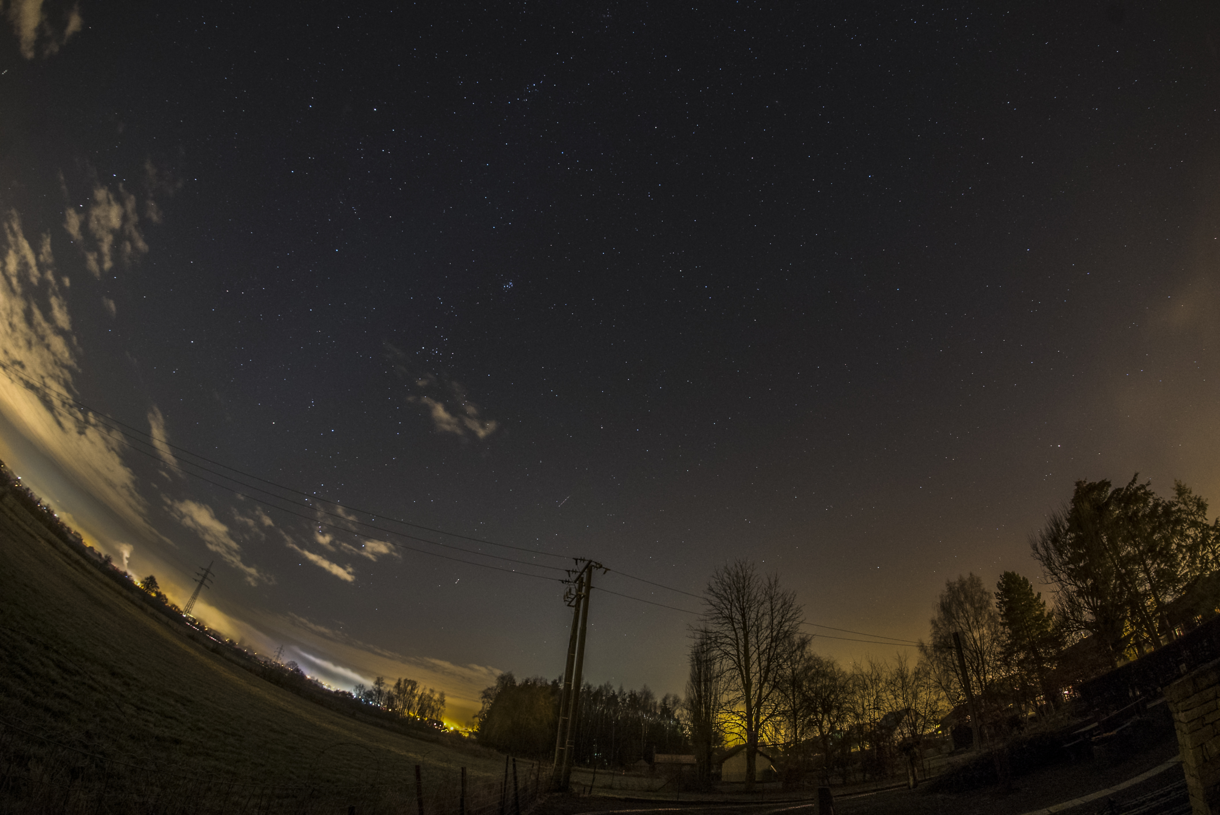 Das Bild, aufgenommen mit einem Fischaugen-Objektiv, zeigt, wie aufgehellt der Himmel im Süden Luxemburgs ist. Obschon die Lichter stark reduziert wurden, zeigt sich die Hauptstadt weiß. Wirtanen ist gerade so zu erkennen, wenn man weiß, wo er steht. Er wird also bestimmt kein leichtes Objekt für das bloße Auge. Nicht mal für einen kleinen Feldstecher.