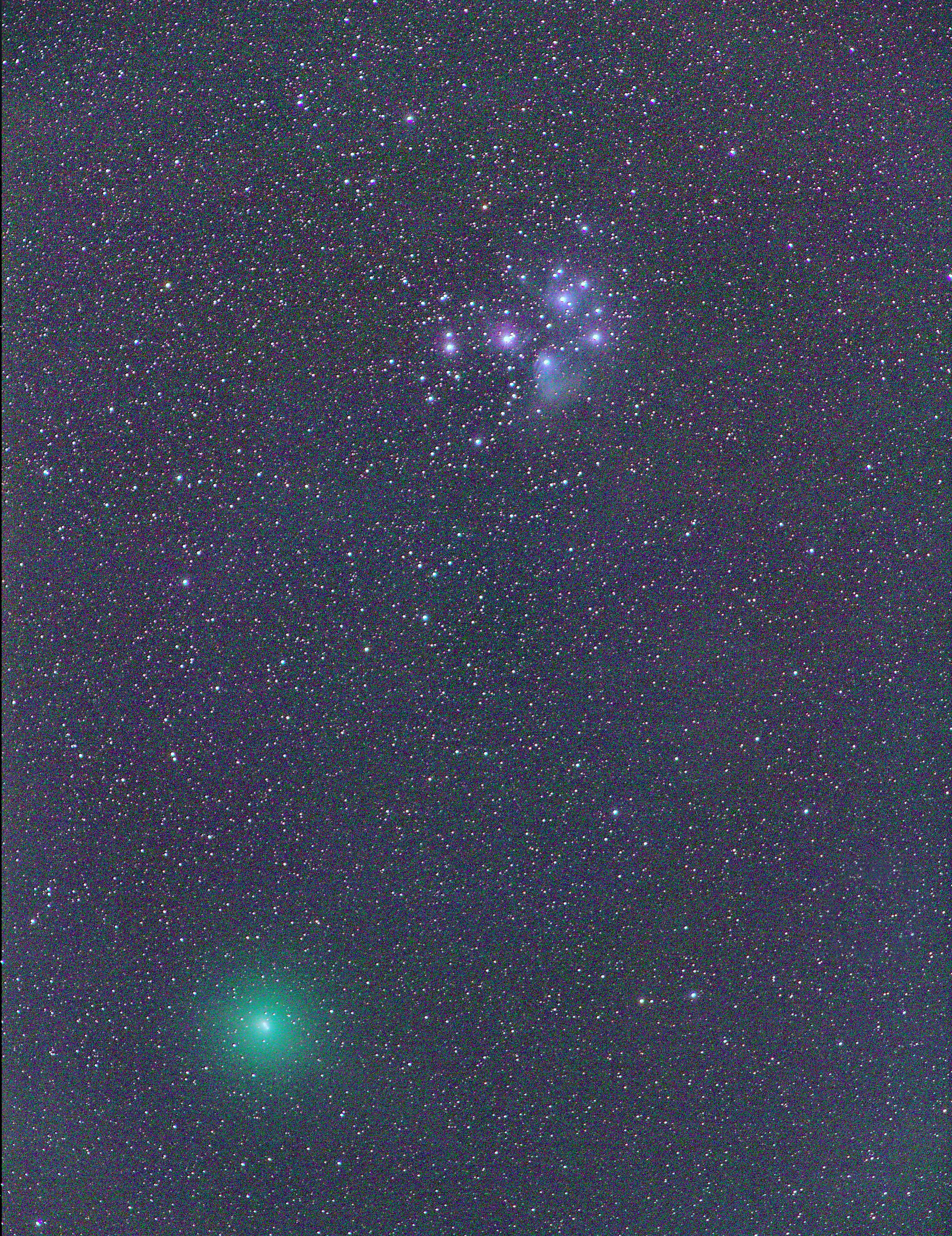Den ganzen Tag habe ich nach Wolkenlücken in der Hochnebel Decke gesucht. Dann kam eine klare wolkenfreie Blase. In den 2 Stunden wurden viele Aufnahmen von der Konstellation Messier 45 mit Wirtanen geschossen. Wer hatte noch Glück?