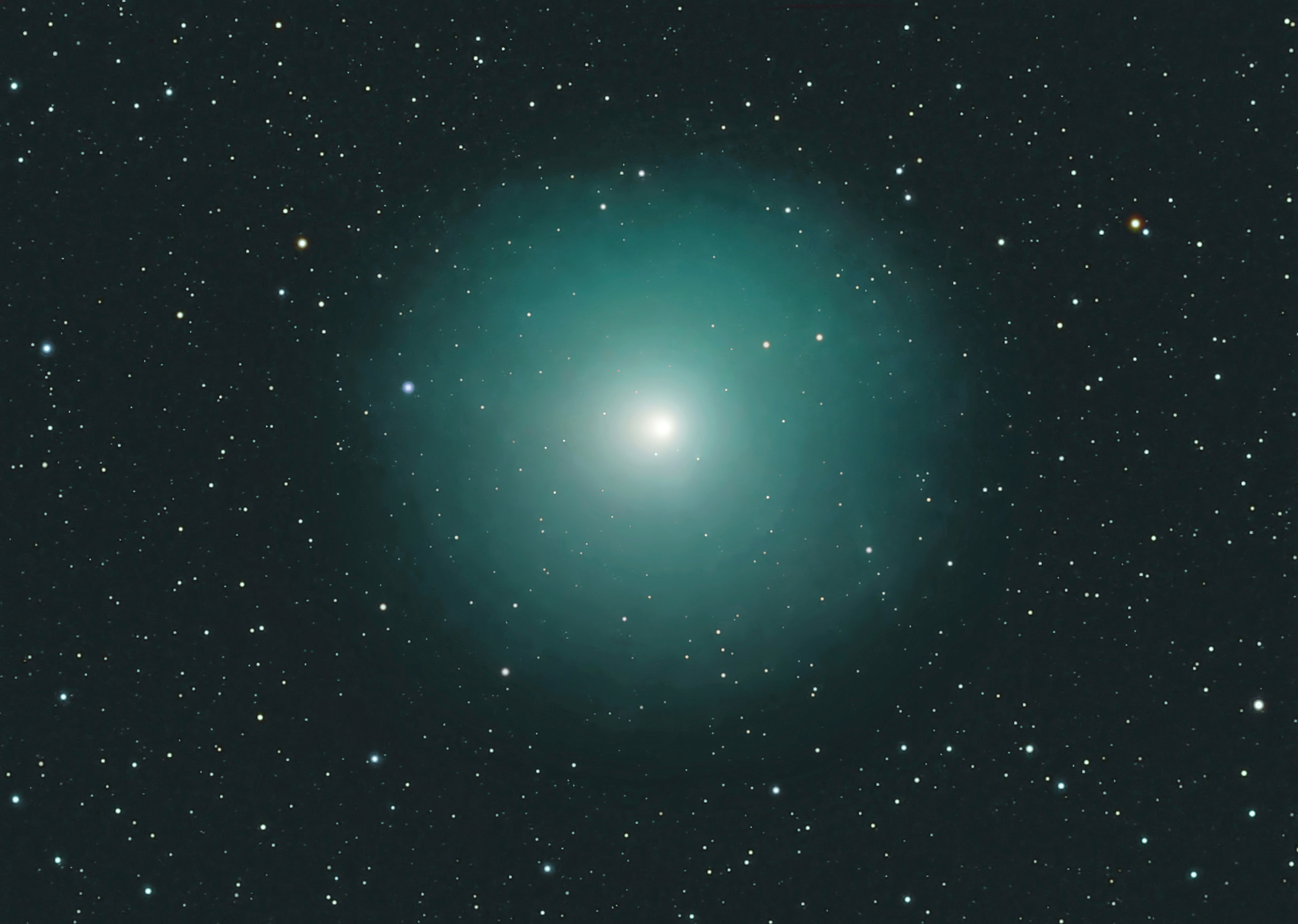 Nach tagelanger starker Bewölkung klarte der Himmel am 15. Dezember 2018 gegen Mitternacht bei uns in Norddeutschland teilweise auf, so dass ein Foto vom Weihnachtskometen möglich wurde.