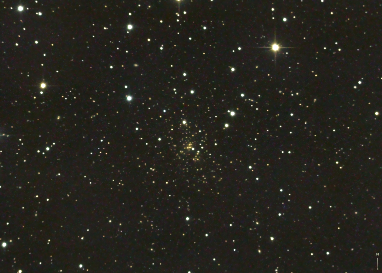 Dies ist kein "pretty picture" und nichts für Perfektionisten! Es zeigt einen der am weitesten entfernten Abellhaufen (2200 Millionen Lichtjahre), der auch einer der massereichsten ist. Das Hubble Space Teleskop hat sich seiner angenommen und eine der eindrucksvollsten Aufnahmen geliefert. Der Haufen zeigt unzählige Gravitationslinsenbögen, an denen man die Verteilung der Dunklen Materie erforschen kann. Nun wollte ich wissen wie dieser Haufen in meinem 8-Zoll-Newton zu sehen sei würde. Natürlich ist es leicht mit einem 60 cm (Skinakas) oder 80er-Spiegel (Chart32) ein HST-ähnliches Bild zu produzieren, aber mit 20 cm Öffnung? Abell 1689 liegt 7.5 Grad östlich von Gamma Virginis. Das sichtbare Bildfeld beträgt bei meinem Chip 34 x 25 Bogenminuten. Insgesamt belichtete ich in mehreren Sitzungen sieben Stunden.