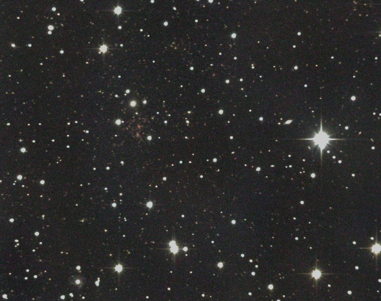 Liebe Leser! Dies ist kein "Pretty Picture"! Wäre es in S/W, erinnerte es an die Bilder,die in den 1960er Jahren mit dem 5m Spiegel auf dem Mt. Palomar(jetzt "Hale Teleskop) mittels Photoplatten gemacht wurden.Daneben geschrieben stand:.... hier blicken wir auf die Grenzen unserer Welt ,wie es dahinter weitergeht, wissen wir nicht.... Es handelte sich dabei um Galaxien,winzige Lichtpünktchen, mit kleinen Pfeilen markiert, in einer Entfernung von 2 Milliarden Lichtjahren, kaum abgehoben von der körnigen Struktur der Photoplatte. Dieses Bild hier zeigt den Galaxienhaufen Abell 370,den schwächsten und mit 4,1 Milliarden Lichtjahren am weitesten entfernten in G. O. Abells Katalog, aufgenommen mit meinem 8" /F4.5 Newton (Himmelshelligkeit 21.0mag arcsec/squ,Bortle-Skala 4-5))