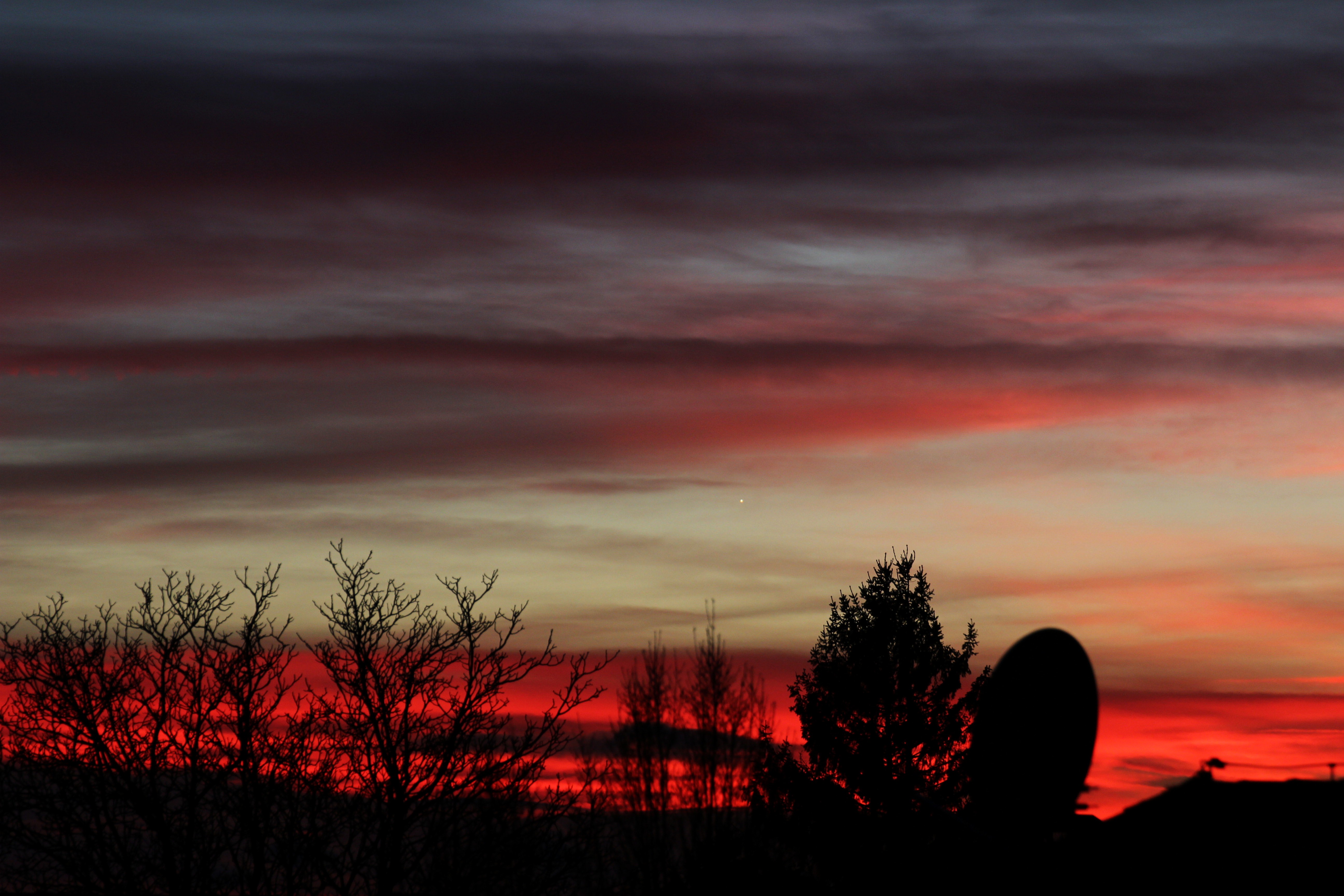 Heute gab es ein wunderschönes intensives Abendrot. Bald tauchte auch die Venus in einer Wolkenlücke auf. Sie war deutlich und leicht mit freiem Auge zu sehen, nicht nur im Fernglas wie am 20. Dezember.
