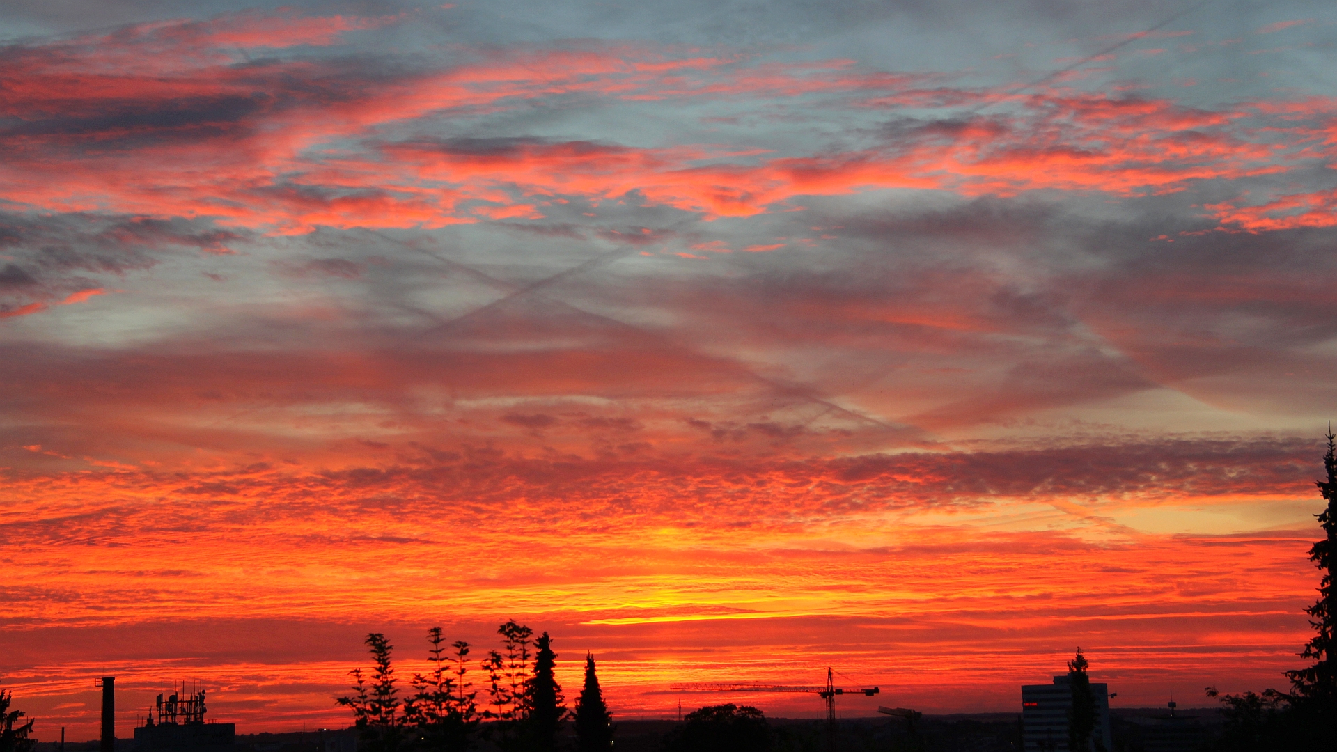 Leserbilder Astronomie: Abendrot und Lichtsäule über Heilbronn