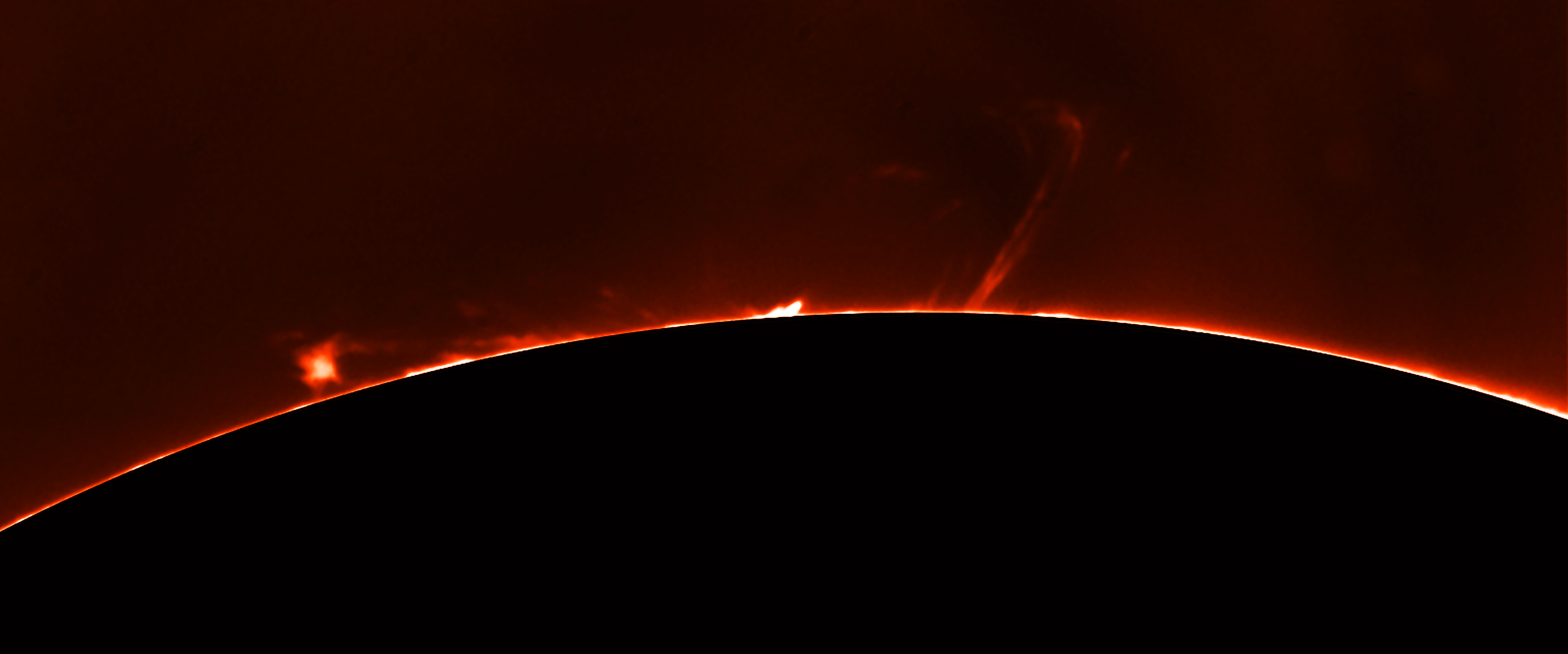 Die schöne Fleckengruppe AR 12403 ist schon am rechten Sonnenrand verschwunden, macht sich aber noch immer mit schönen Auswürfen bemerkbar.