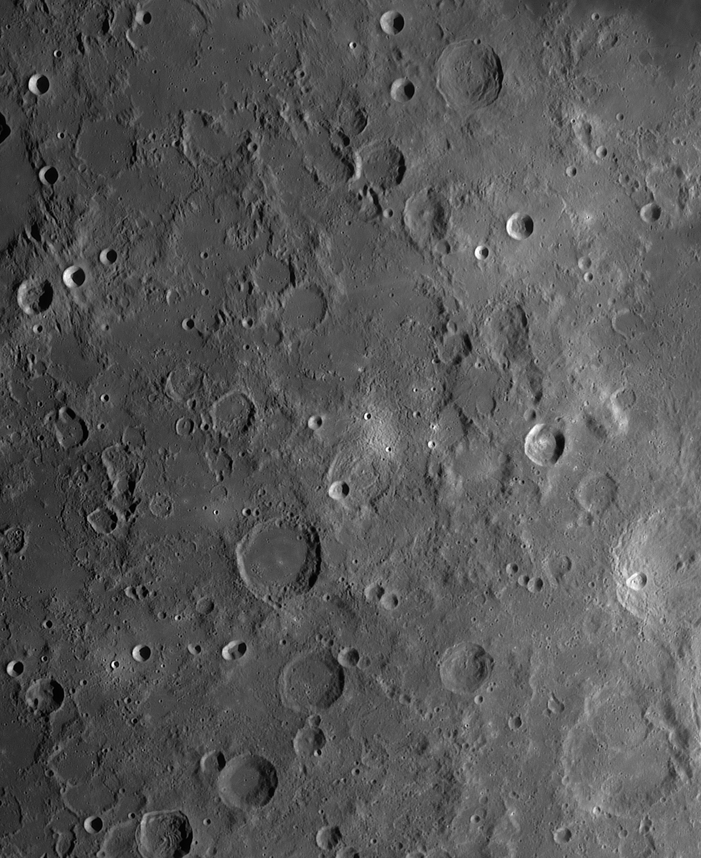 Von Delabre bis Geber reicht dieses Mosaik aus drei Bildern. Die auffallendste Gestalt bildet der Krater Abulfeda zusammen mit der gleichnamigen Catena.