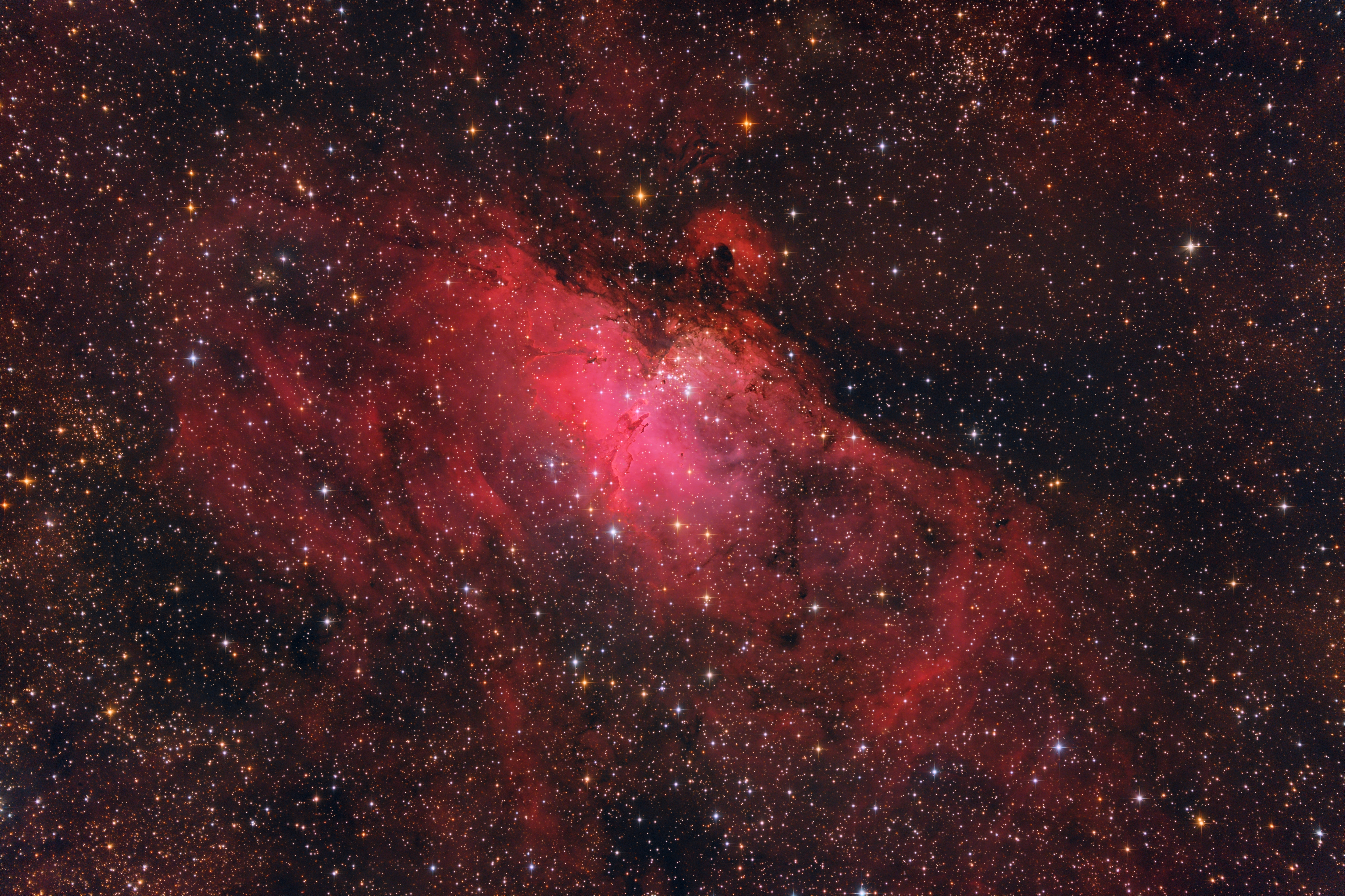 Der Adlernebel oder Messier 16 im Sternbild Schütze steht in unseren Breiten sehr tief am Horizont. In Namibia hingegen hat man die Gelegenheit, dieses Objekt unter extrem guten Bedingungen im Zenit zu fotografieren. Diese Gelegenheit habe ich mir nicht entgehen lassen, als ich im August 2022 meinen jährlichen Aufenthalt auf einer namibischen Astrofarm absolvierte.