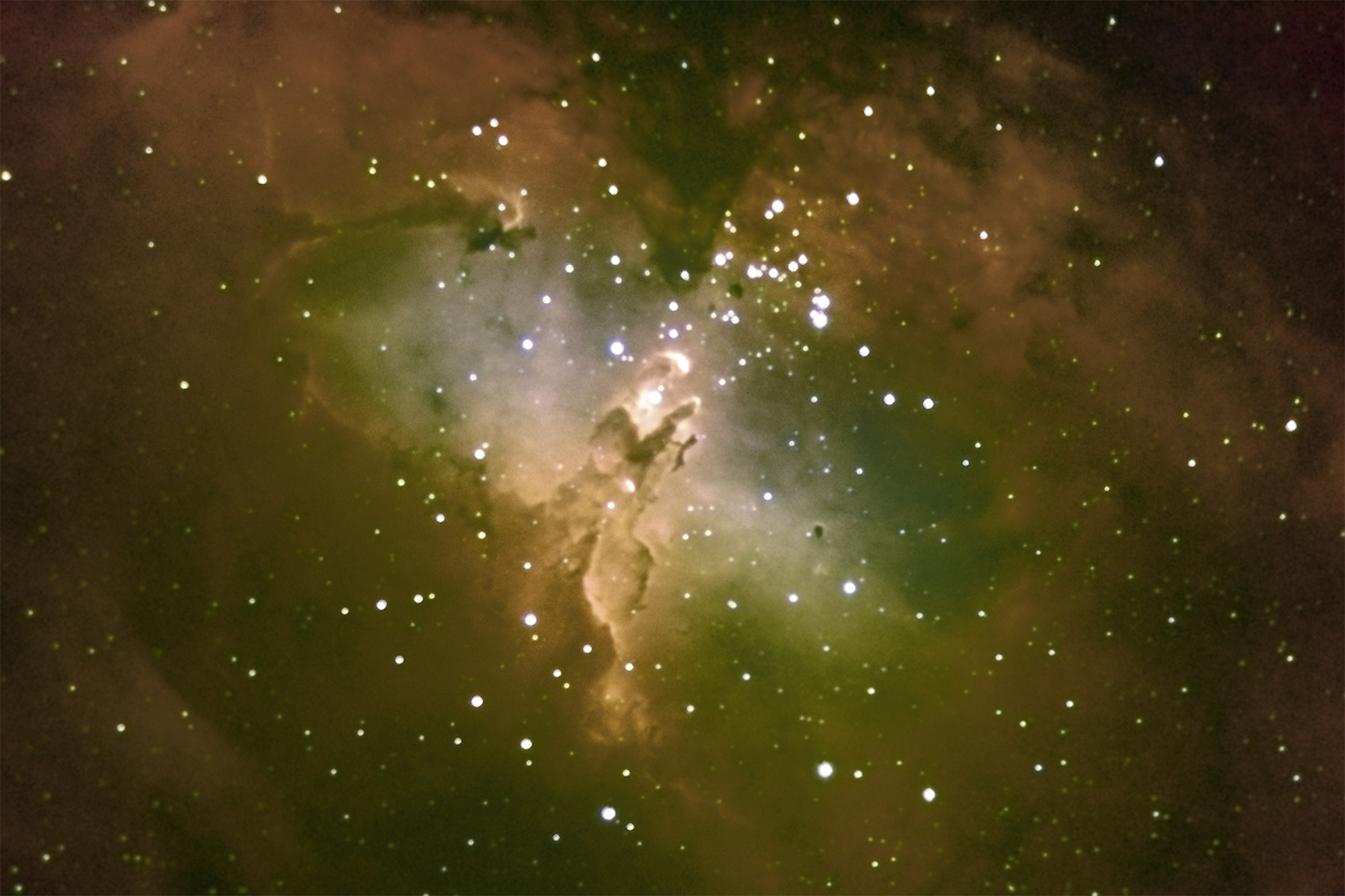 Aufgrund einer eingeschränkten Sicht bei der Deklination von -13,84 Grad auf den Adlernebel musste ich Aufnahmen von 4 Tagen benutzen.