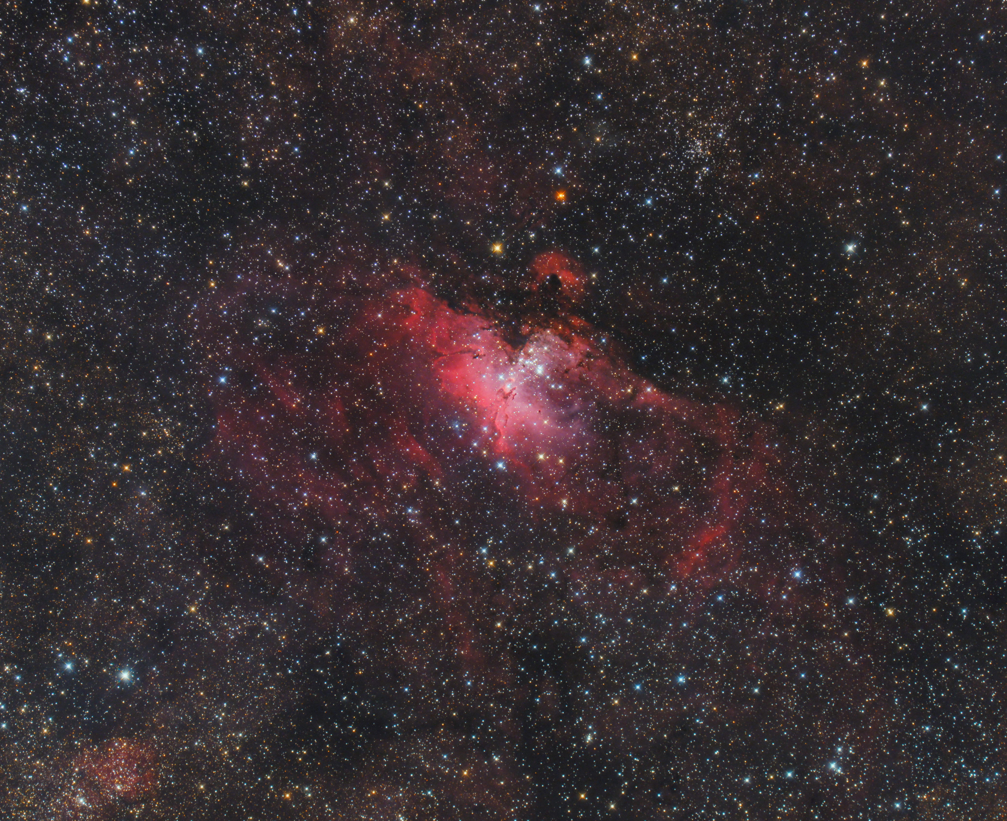 Der Adlernebel IC 4703 ist ein Nebel in Verbindung mit dem offenen Sternhaufen M 16. Im Sternbild Schlange gelegen ist er von uns etwa 7000 Lj. entfernt. Der Adlernebel besteht als Emissionsnebel großteils aus Wasserstoff. Die in diesem ca. 20 Lichtjahre großen Nebel liegenden Staubsäulen wurden durch ein Hubble-Bild als "Säulen der Schöpfung" bekannt.