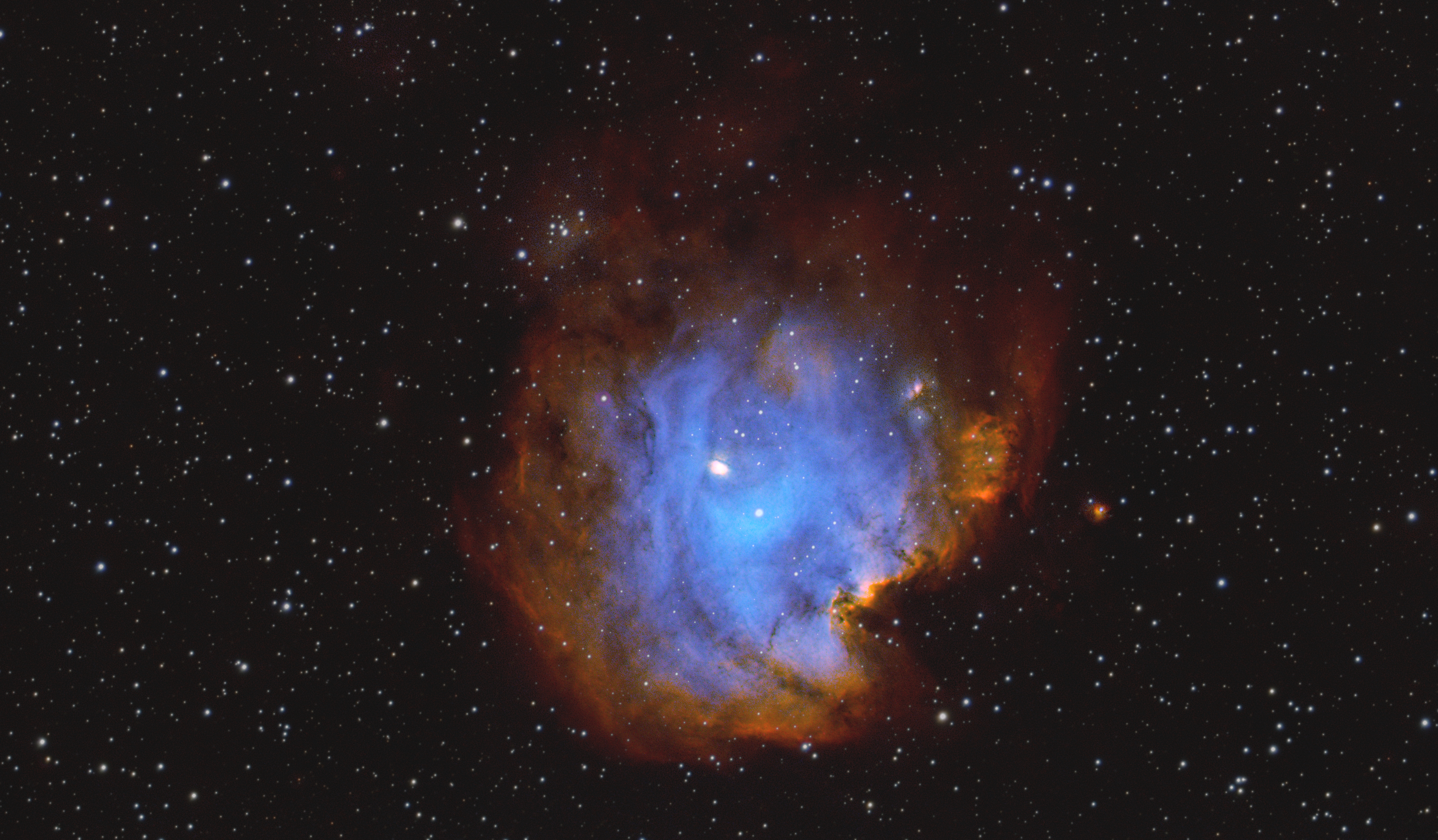 Mein Bild vom Affenkopfnebel ist an insgesamt fünf Nächten im RGB, H-alpha, OIII sowie SII Spektrum entstanden. Die Belichtungszeit teilt sich wie folgt auf: