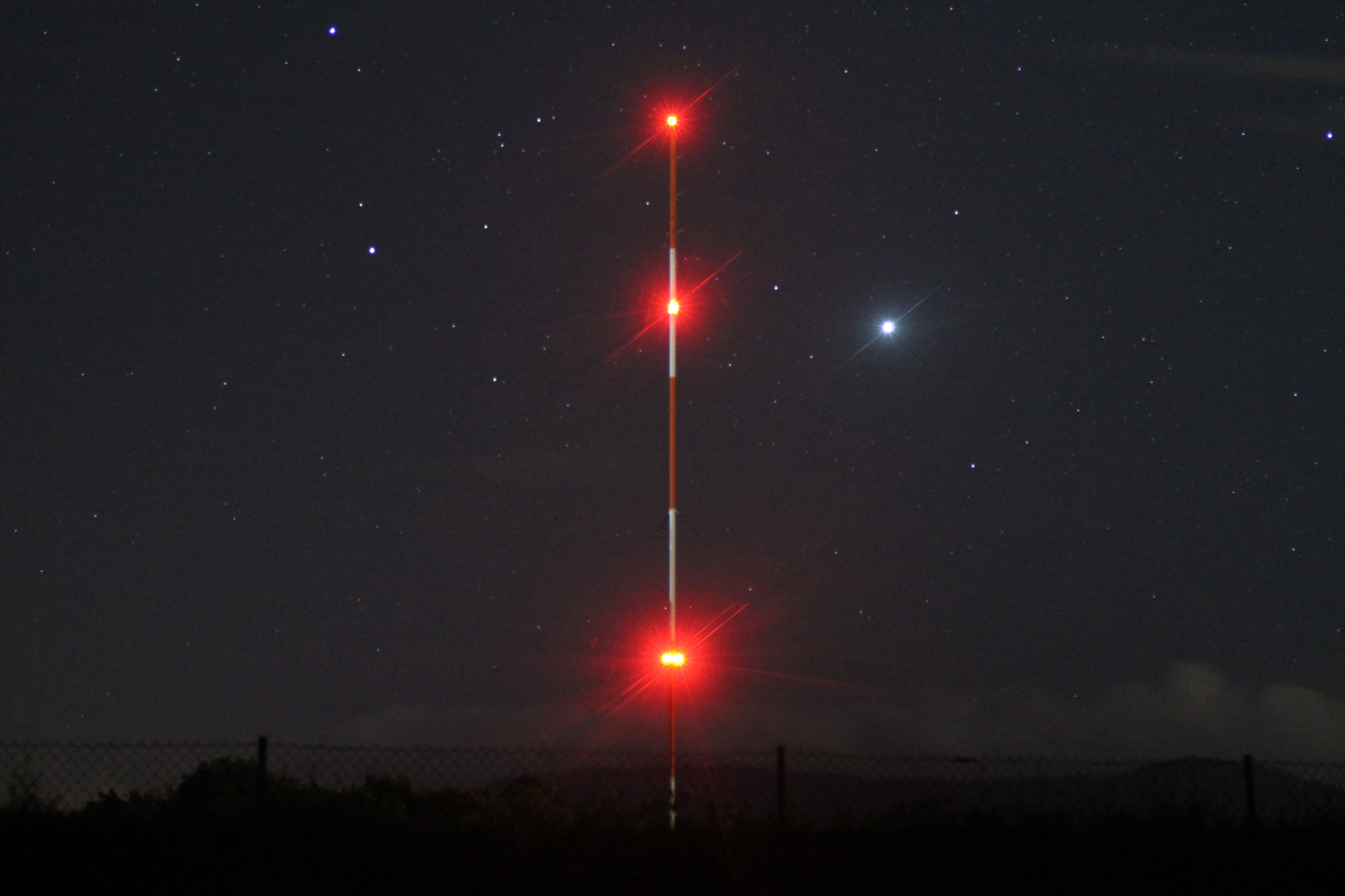 Am Morgen des 26. August 2012 machte ich dieses Foto des AFN-Sendemasten in Heidelberg-Wieblingen mit Venus im Sternbild Zwillinge im Hintergrund.