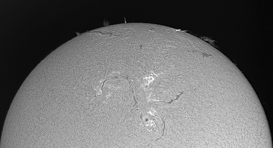 Dies GIF-Animation zeigt eine sehr aktive Region der Sonne am 21.8.2014. Zwischen 10:57 und 11:12 Uhr MESZ wurden mit einer DMK 51 drei AVIs erstellt und zu drei Bildern verarbeitet. Achtung! Die Bilder müssen vertikal gespiegelt werden! Leider denkt nicht jeder Sonnenfotograf daran. Dann wurden sie zu einer GIF-Animation zusammengestellt.