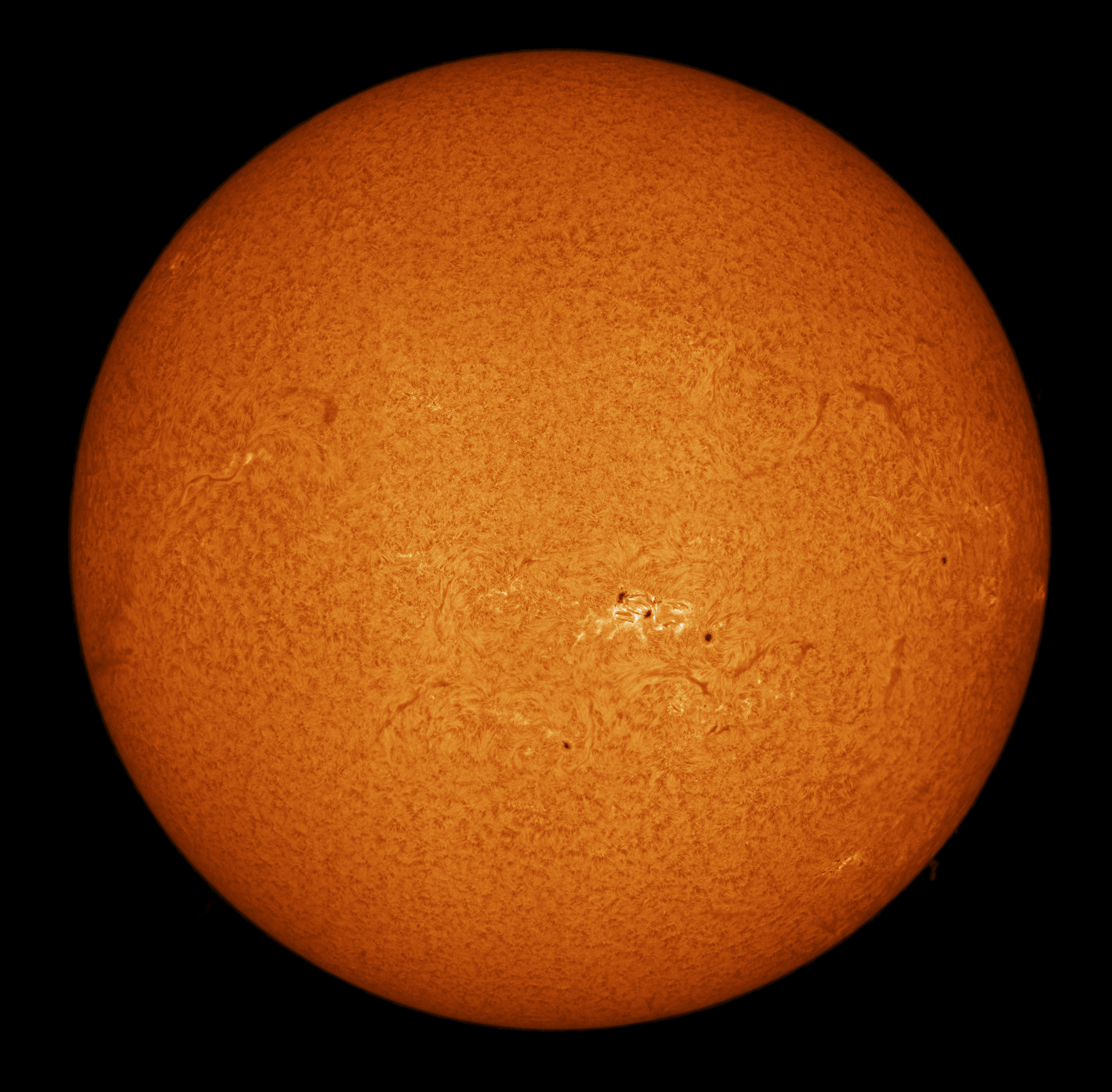 Nun auch in der Farbversion fertig bearbeitet - feine Protuberanzen, schöne Filamente und Fleckengruppen.