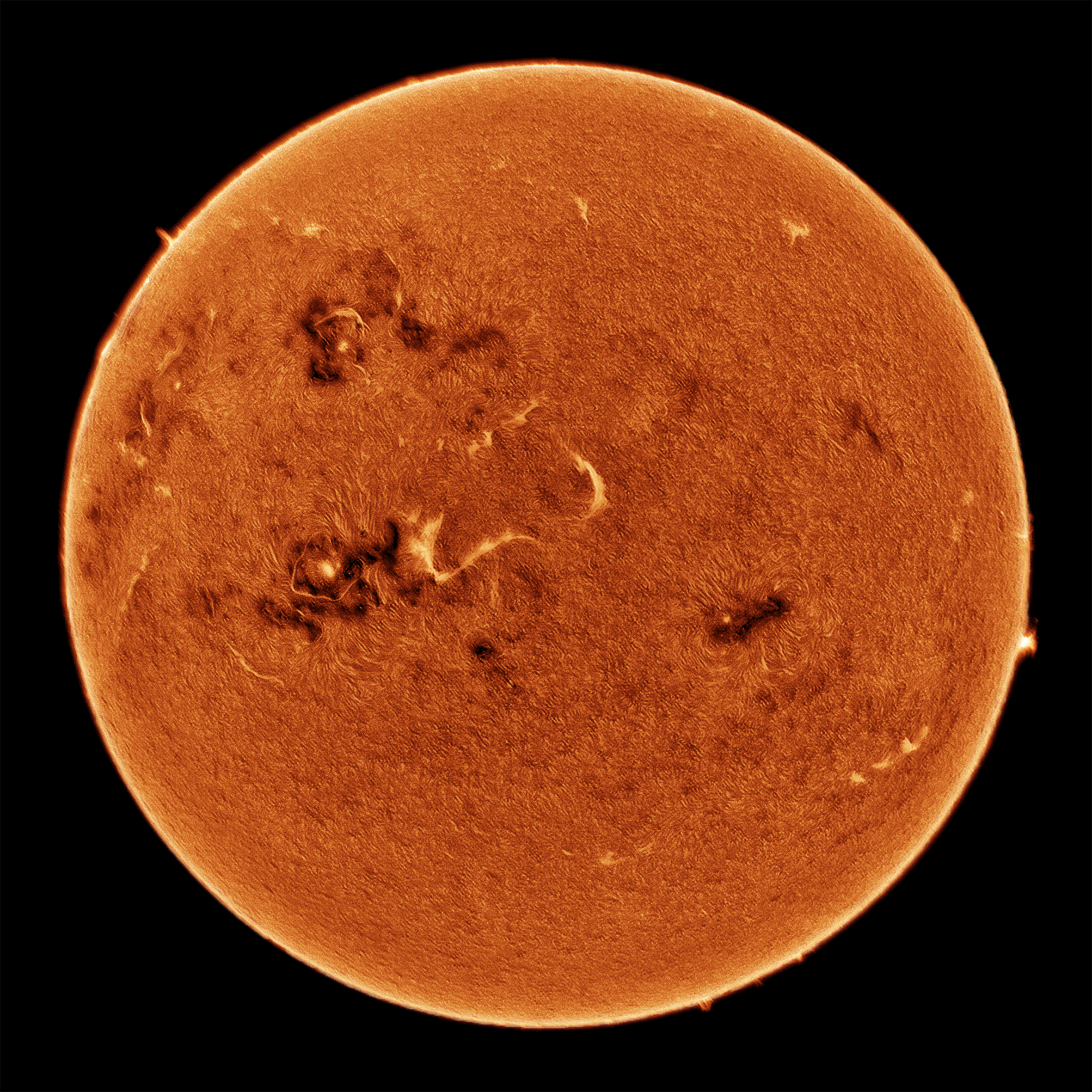 Sonne in H-alpha aufgenommen mit dem Acuter 40/400 Sonnenteleskop.