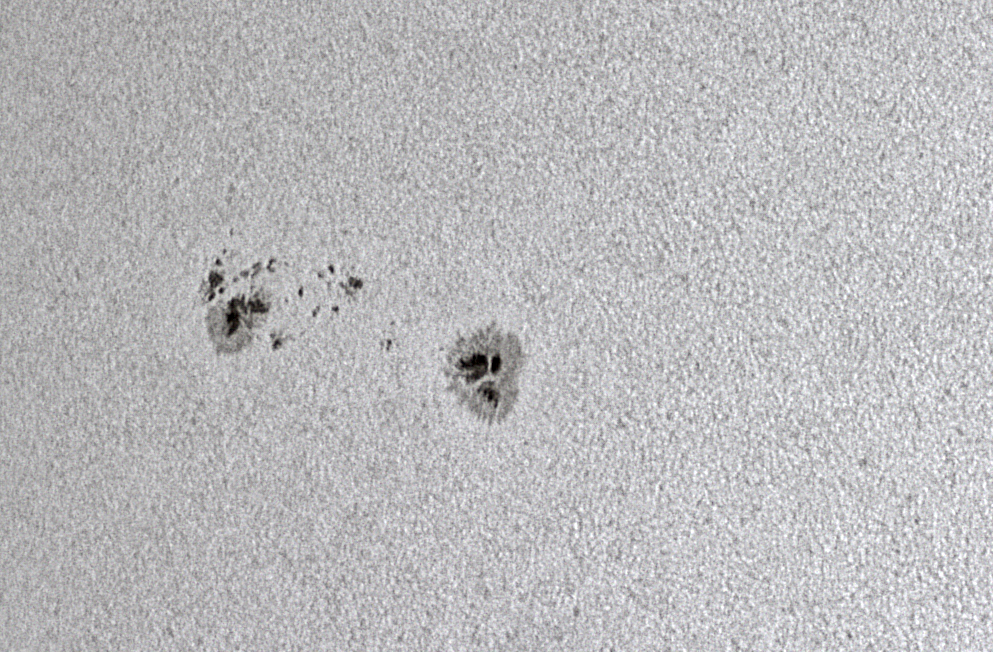 Hier der aktuelle AR 2699 durch nicht ganz klaren Himmel. Nach längerer Zeit wieder ein schön detaillierter Fleck. Am Mittwoch hat er einen kleinen C8.1-Flare produziert, das Potenzial zu etwas mehr ist gegeben. Behalten wir ihn also im Auge, soweit das Wetter das zulässt.