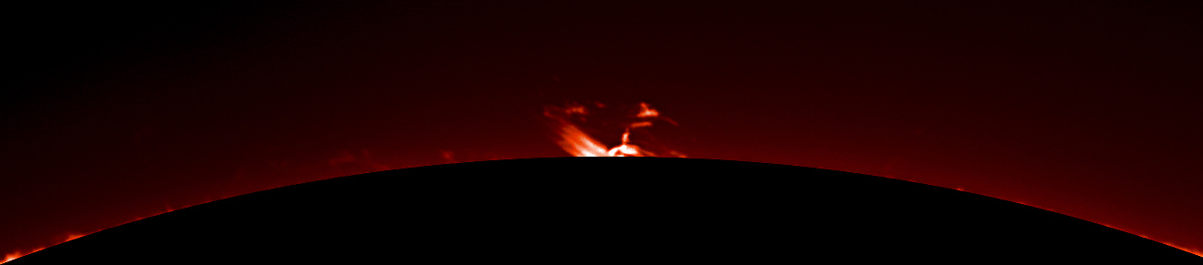 Die Protuberanz ist Begleiterin eines neuen Sonnenflecks am linken Sonnenrand. Aus Gründen der Anschaulichkeit habe ich das Bild gedreht.