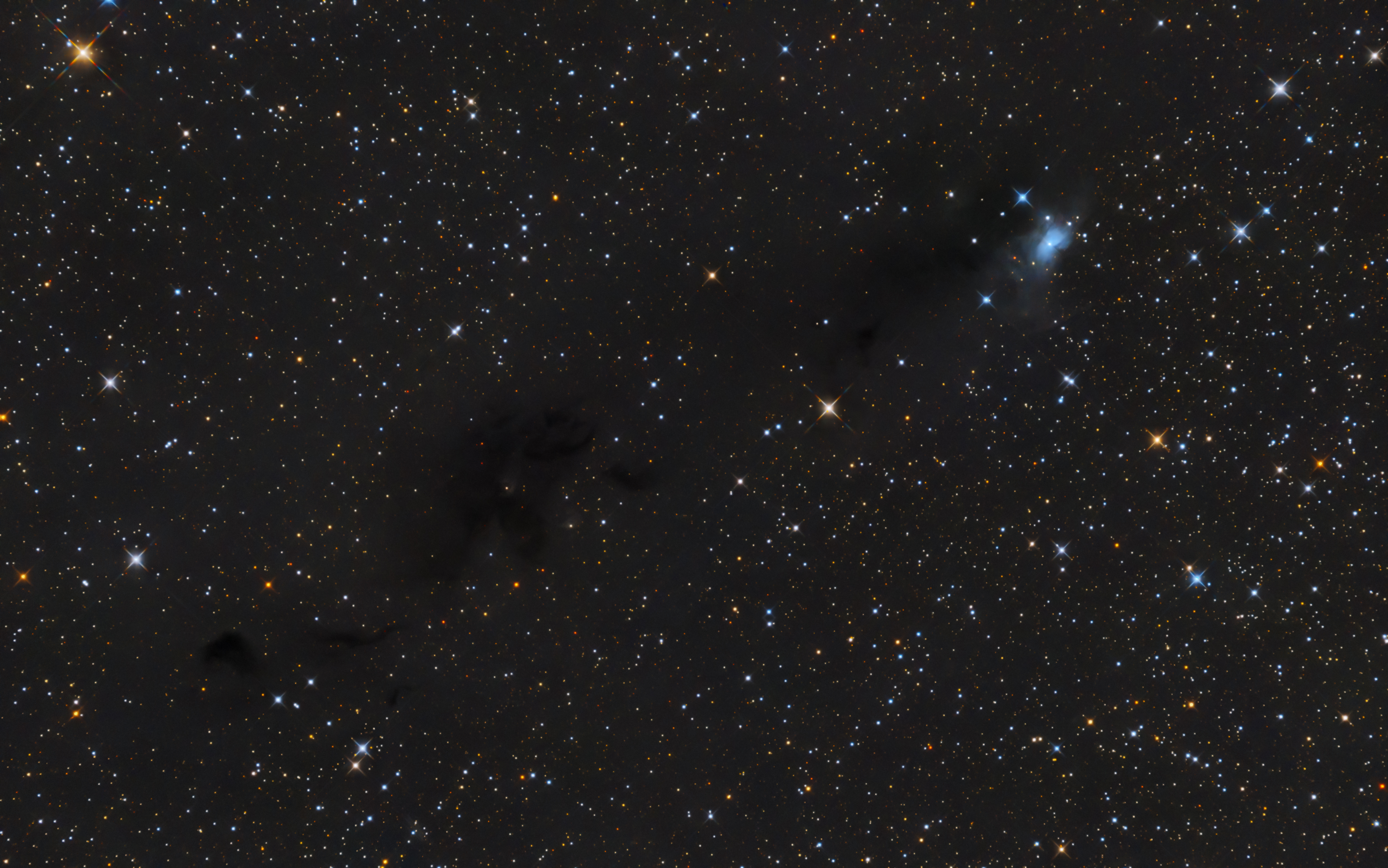 Leider steht der Orion zu einer hier meterologisch sehr ungünstigen Jahreszeit am Himmel, dabei gibt es in dieser Himmelsgegend so vieles zu sehen. Die letzten schönen Märztage habe ich für diesen kleinen Reflexionsnebel genutzt.