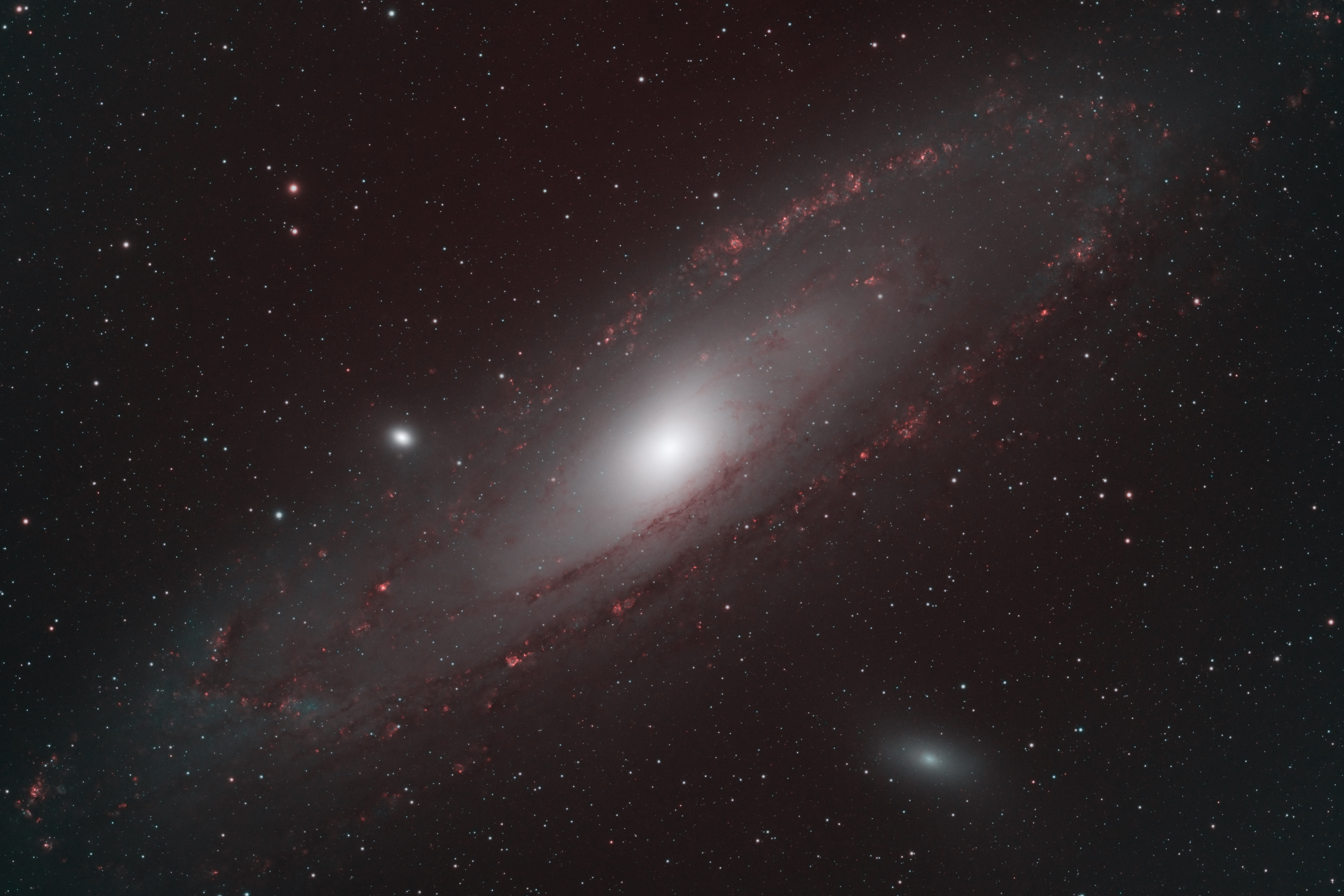 Leserbilder Astronomie: Andromeda Galaxie in den H-Alpha- und OIII-Schmalbandlinien