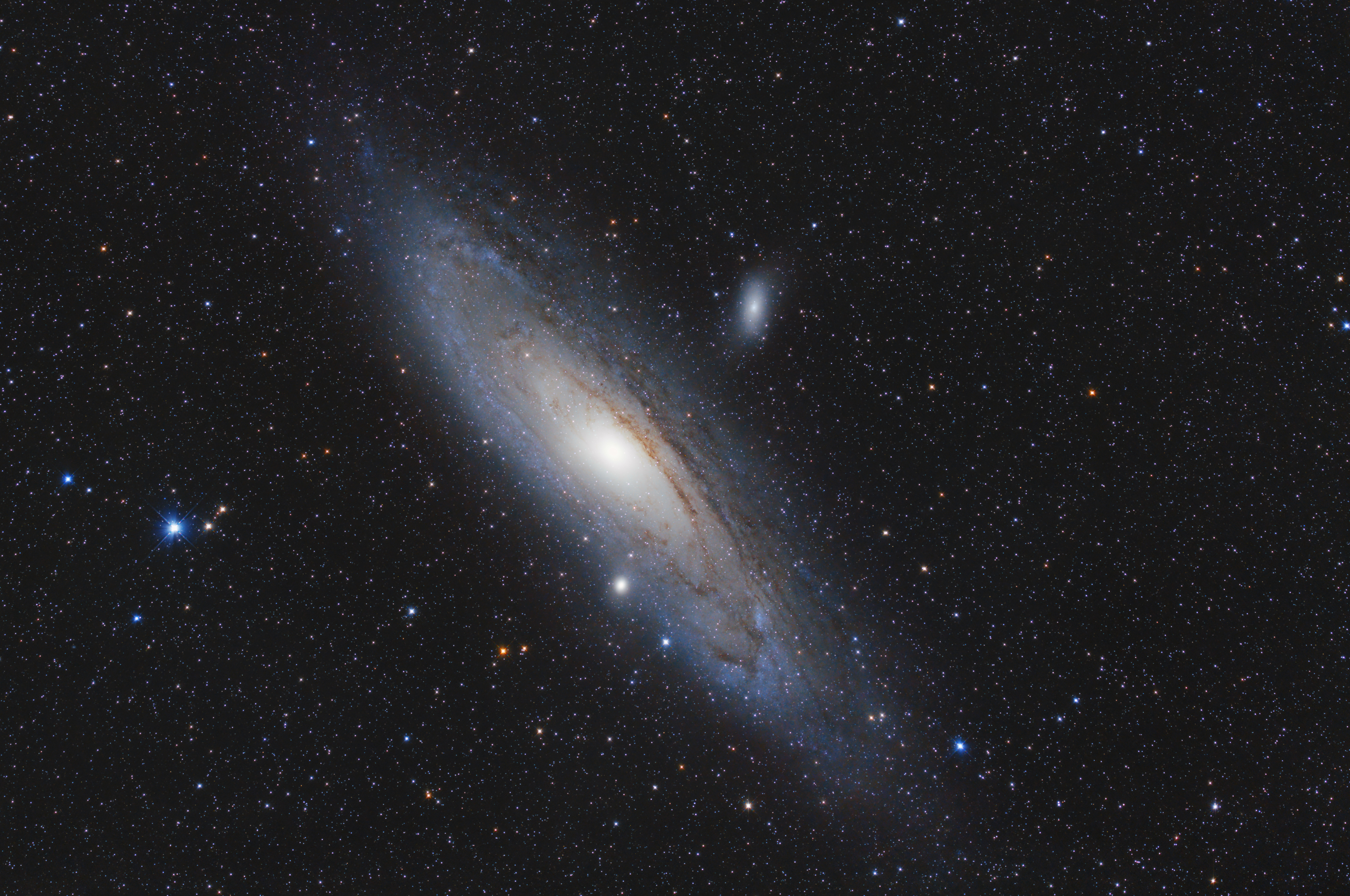M 31 im Sternbild Andromeda ist die uns am nächsten gelegene Galaxie und mit unserer Milchstraße gravitativ verbunden. Sie ist eine Spiralgalaxie vom Hubble-Typ Sb. Bei einer Entfernung von rund 2,5 Millionen Lichtjahren beträgt ihr Durchmesser etwa 140000 Lichtjahre. Sie ist das größte Mitglied der Lokalen Gruppe. M 31 hat etwa 40 Begleiter, von denen die beiden elliptischen Galaxien M 32 und NGC 110 am hellsten sind.