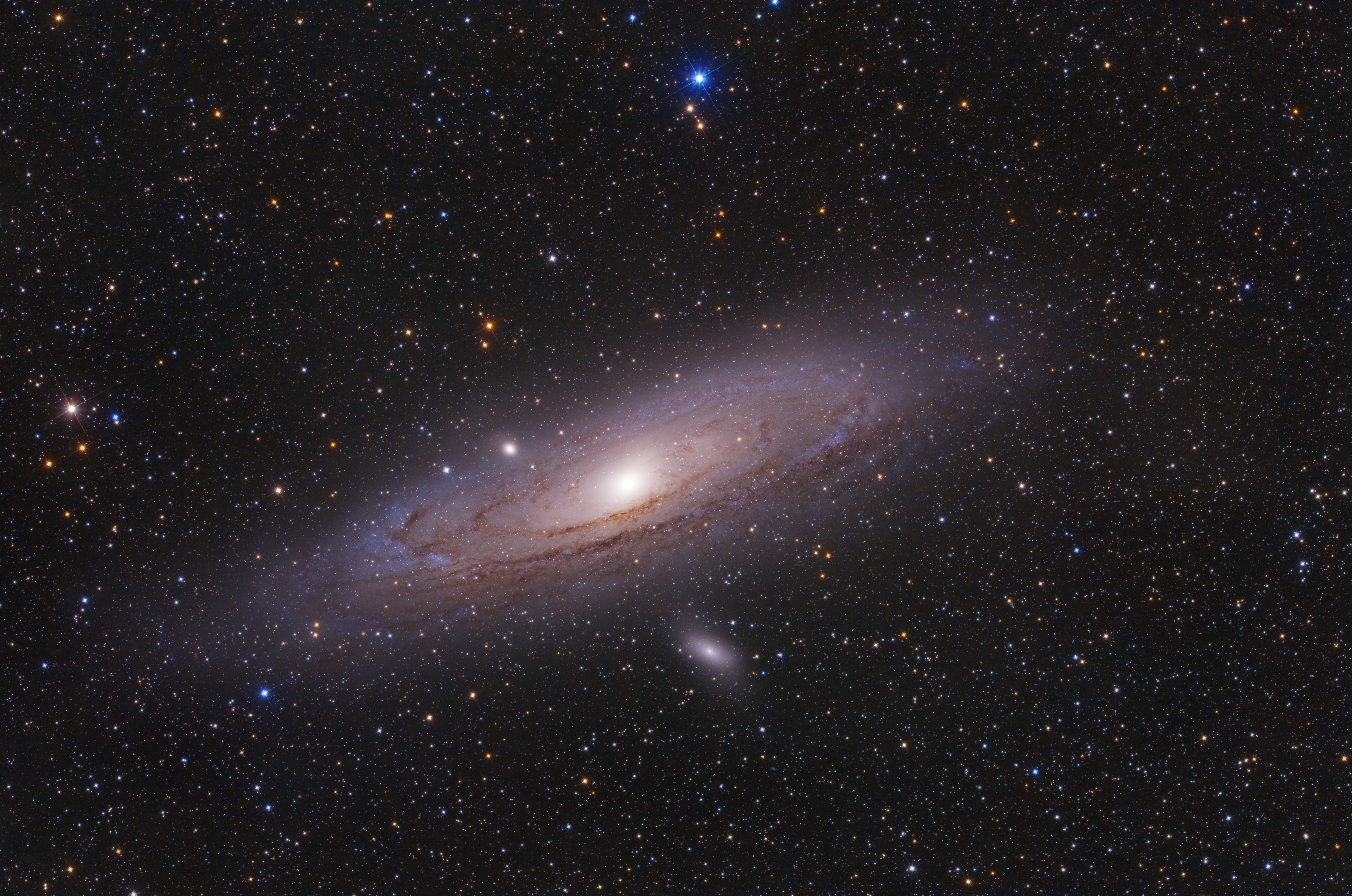 Anfang September war uns das Wetter gut gesonnen, und ich konnte ein paar Nächte der Astrofotografie nachgehen. Leider musste ich morgens früh raus und konnte so mein Vorhaben die Andromedagalaxie mal richtig tief zu belichten, nicht so verwirklichen, wie ich es gerne gehabt hätte. Dennoch sieht man schon ansatzweise Strukturen des äußeren Halos, ganz schwach zu erkennen an den Rändern der Galaxie als Nasen. Im Wikipedia Artikel zu Messier 31 findet man eine Aufnahme, die eben diese Strukturen deutlich zeigt.