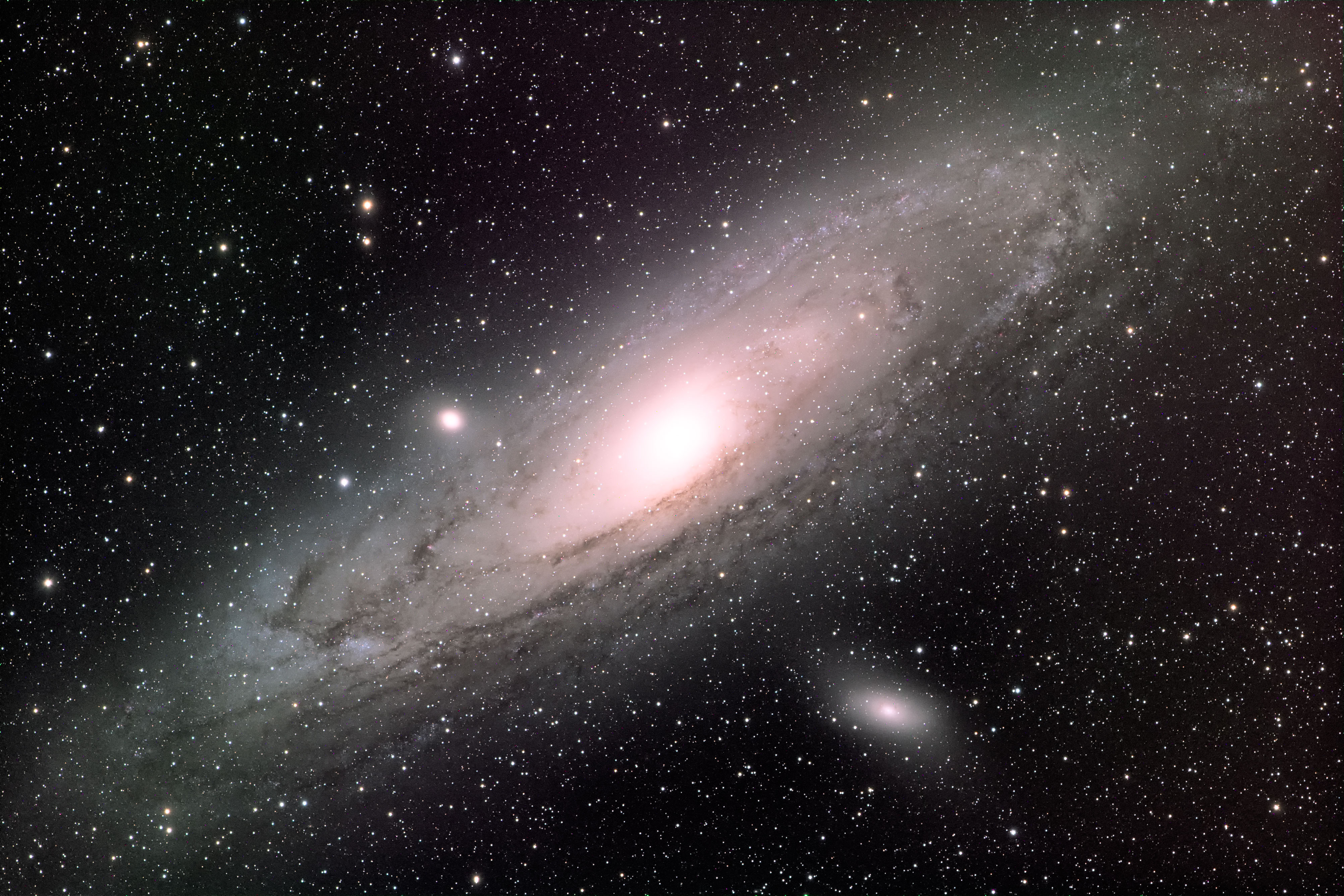 Am 17. September 2014 ist mir von Mittenwalde (30 Kilometer südlich von Berlin) aus das angehängte Bild der Andromeda-Galaxie gelungen. Ich halte es für bemerkenswert, weil es auch von einem Standort in Großstadtnähe noch die lichtschwachen äußeren Bereiche von M 31 zeigt.