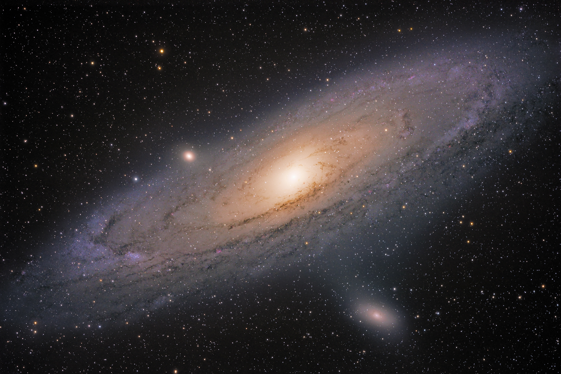 Auch wenn Andromeda mit freiem Auge recht einfach am Himmel aufzufinden ist, so hat es mich doch überrascht, wie anspruchsvoll es ist, diese Galaxie zu fotografieren. Das, was wir in dunklen Nächten freisichtig erkennen können, ist lediglich das Zentrum von M 31. Die Außenbereiche hingegen weisen eine recht geringe Flächenhelligkeit auf. Subjektiv verteilt sich das gesamte optische Licht von M 31 auf etwa 5 Vollmond-Durchmesser