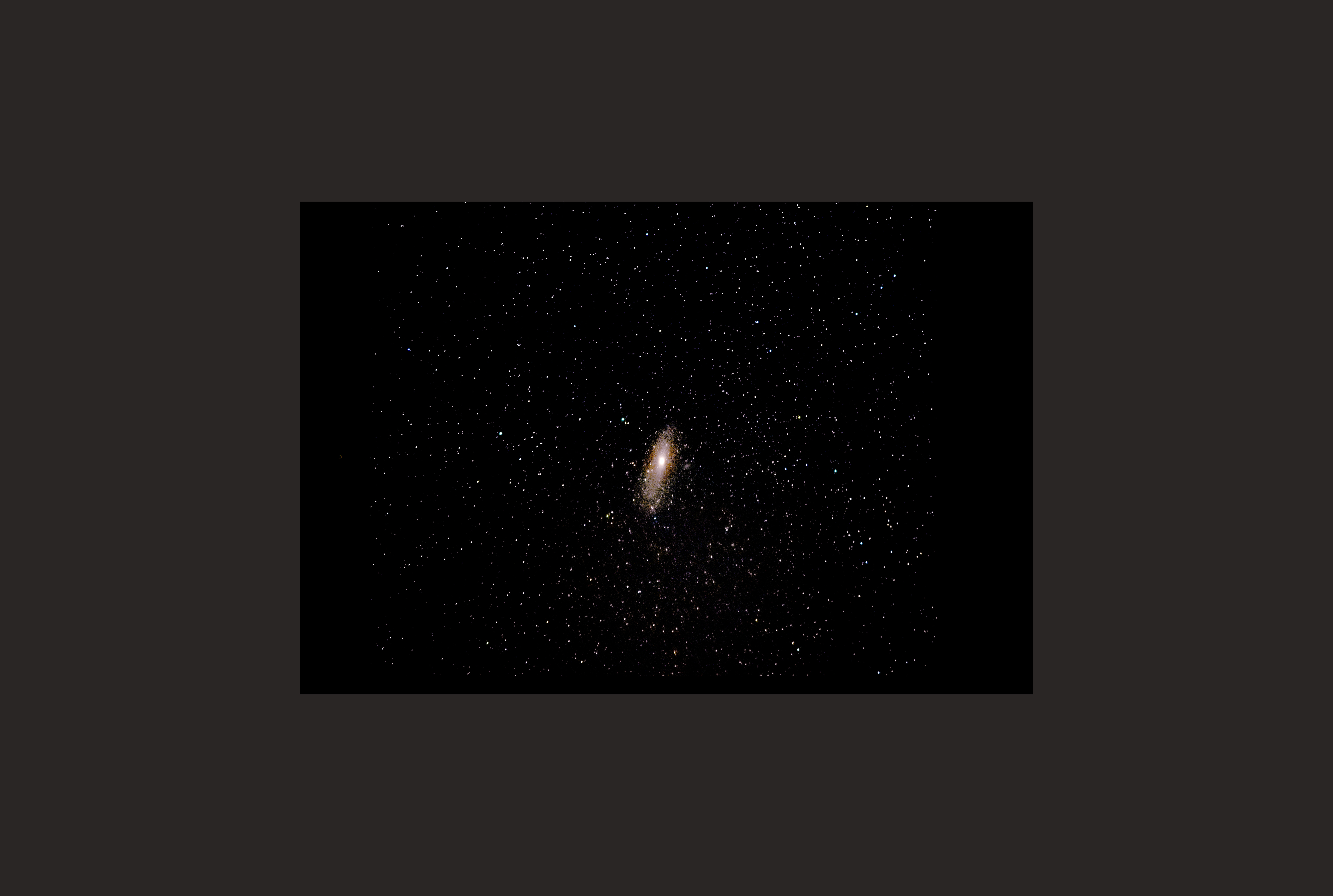 Ich habe versucht mit feststehender Kamera und einem Zoomobjektiv, Andromeda zu fotografieren.