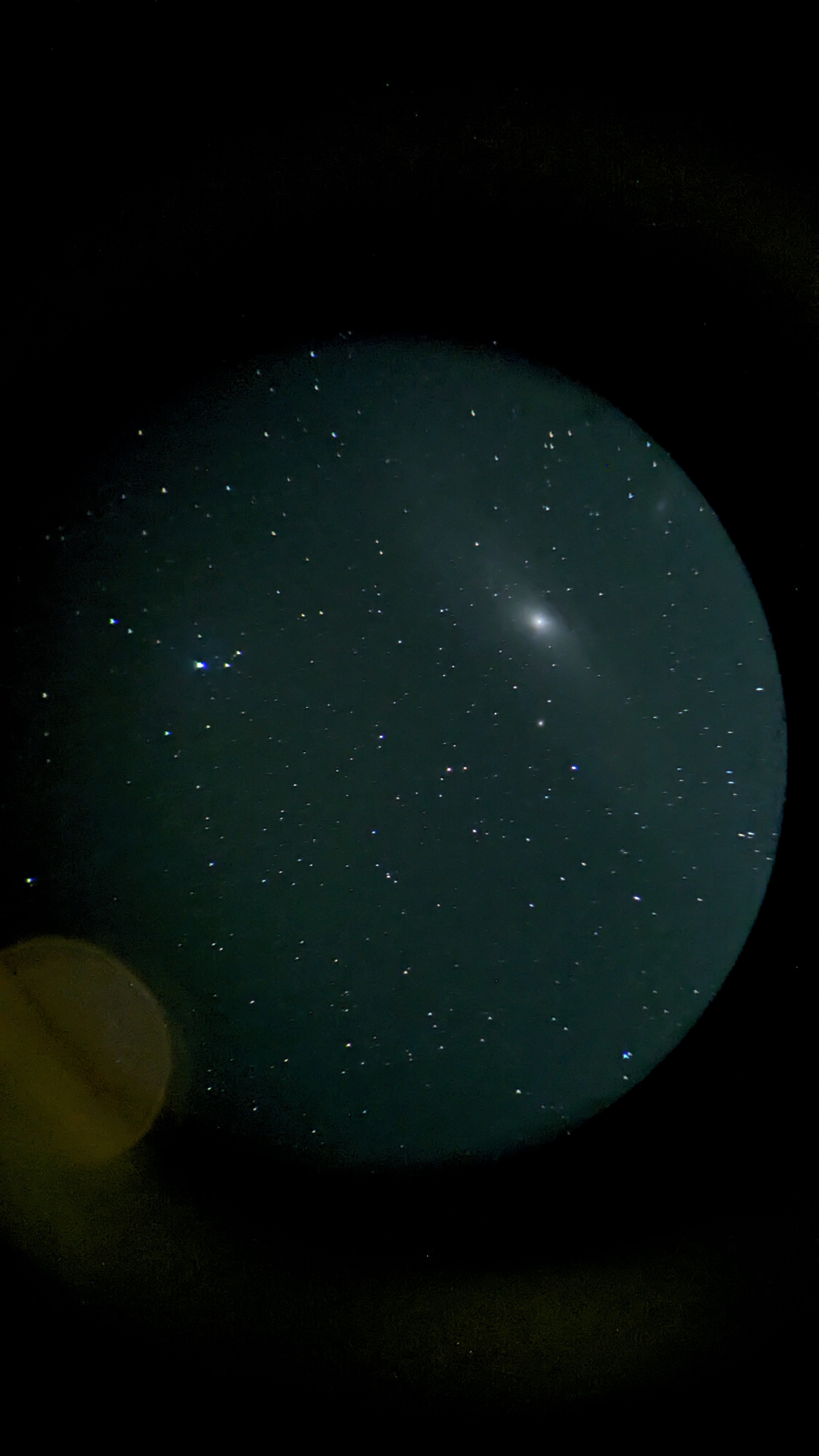 Leserbilder Astronomie: Andromedagalaxie durch Fernglas mit Smartphone