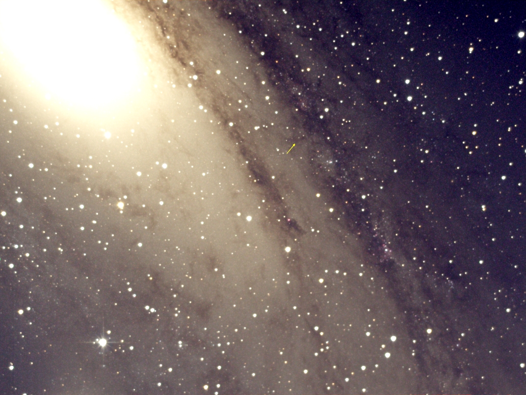 Heute genau vor 100 Jahren (es war damals eine Nacht von Freitag auf Samstag) am 5. Oktober 1923 gelang Edwin Hubble mit dem damals größten Spiegelteleskop der Welt, dem »Hooker-Teleskop« (Öffnung 100 Zoll / F5) auf dem Mount Wilson nördlich von Pasadena die Aufnahme (H335H) und Entdeckung des ersten Cepheiden im Andromedanebel. Dieser ist etwa 7000-mal heller als unsere Sonne, seine scheinbare Helligkeit schwankt zwischen 18,2 und 19,4 mag, seine Periode bestimmte Hubble nachfolgend zu 31,4 Tagen. Auf Grund der von Henrietta Leavitt 1912 gefundenen Perioden-Leuchtkraft-Beziehung (Leavittsches Gesetz) konnte Hubble daraus eine Entfernung von 900000 Lichtjahren ableiten. Damit war die Frage nach der außergalaktischen Natur der Spiralnebel entschieden.
