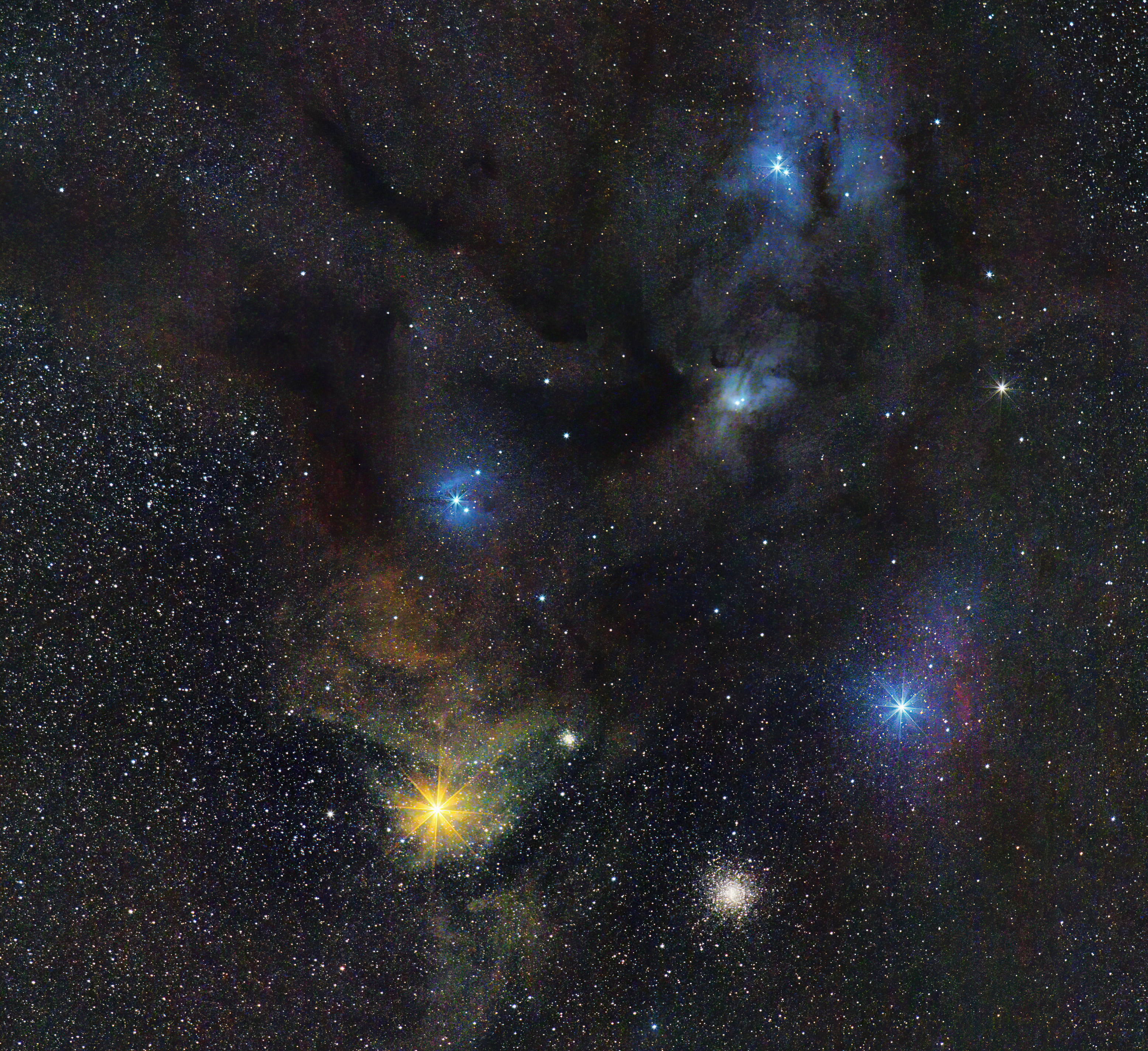 Die Antares-Region, immer wieder wunderschön! Antares, der Kugelsternhaufen M4, Reflexions-, Emissions- und Dunkelnebel.