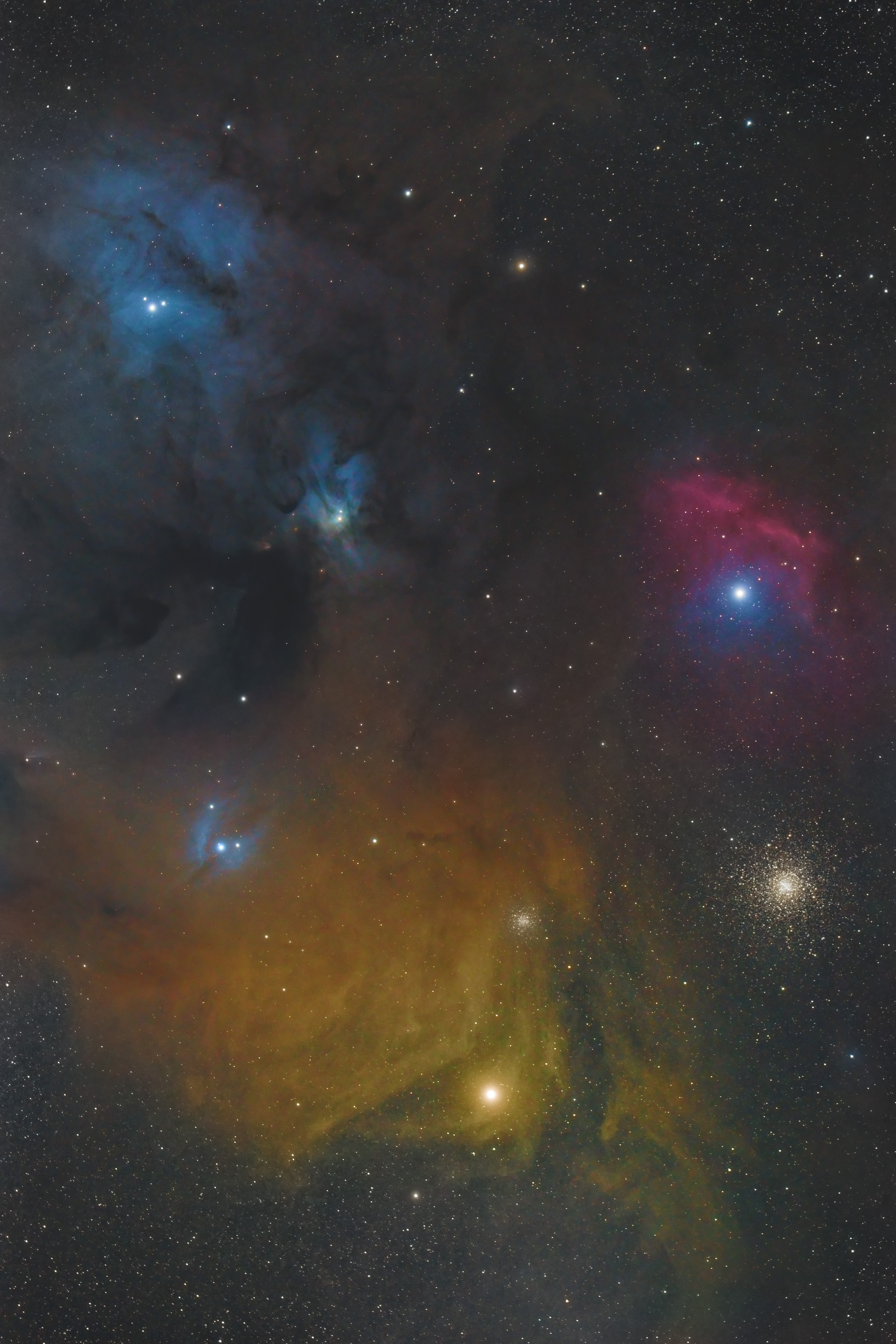 Die farbenfrohen Nebelgebiete zwischen Skorpion und Schlangenträger stellen für mich den schönsten Bereich unseres Nachthimmels dar. Von Dunkelnebeln über Reflexions- und Emissionsnebeln, bis hin zu Sternentstehungsgebieten und einem roten Überriesen im Endstadium: Alles ist in einem Bild vereint! Die geringe Höhe in unseren Breiten macht es jedoch sehr schwierig, dieses Gebiet zu fotografieren. Deshalb freue ich mich besonders, dass mir Anfang Mai diesen Jahres die oben gezeigte Aufnahme gelungen ist!