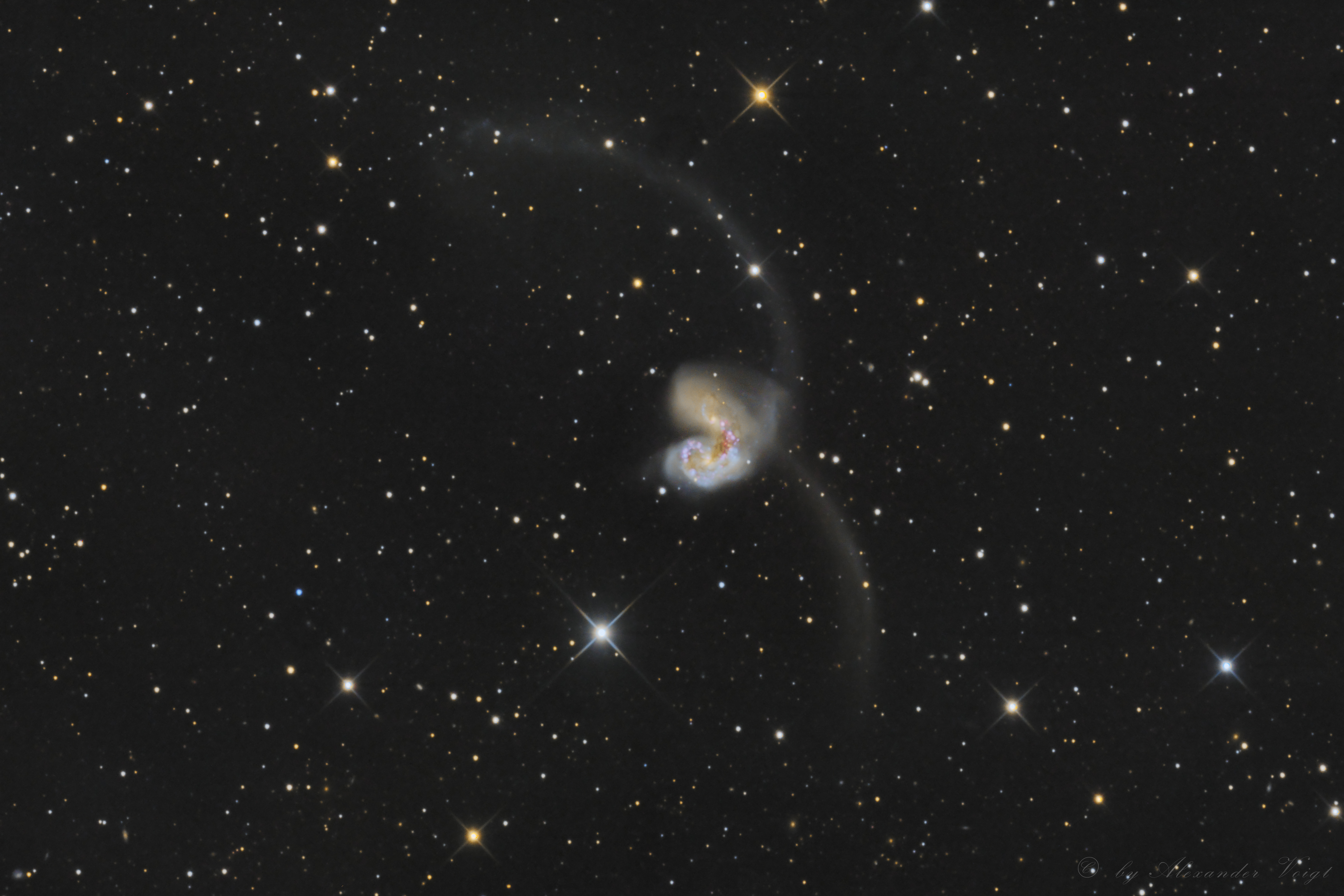 Die Aufnahme von den Antennen-Galaxien entstand in den Nächten vom 21. auf 22. und 22. auf 23. März 2017, beim Aufenthalt auf der Hacienda los Andes, in Chile. https://www.lexpics.de/